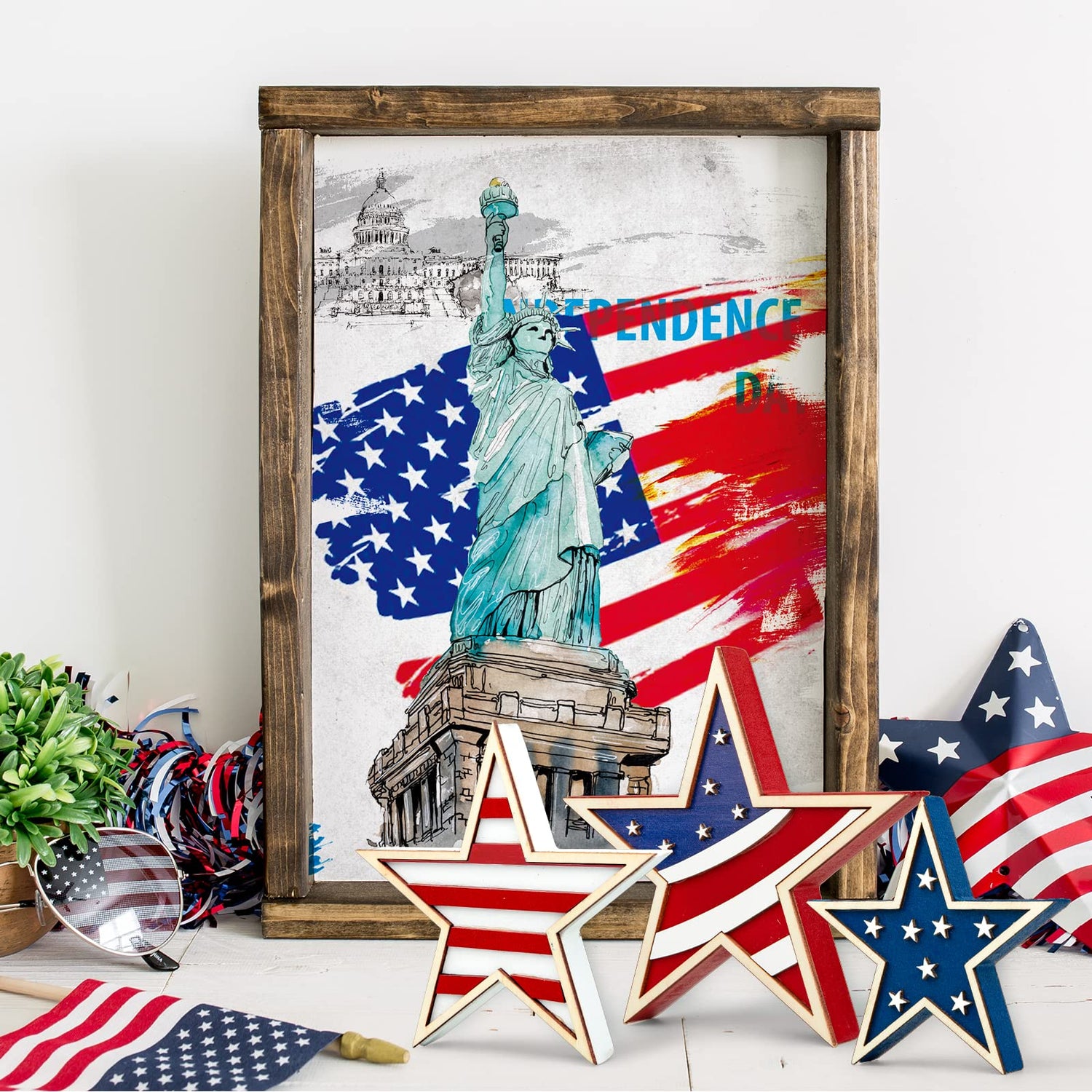 - What You Will Get - 3 pieces 4th of July wooden table decorations are included in the package, assorted designs that make table centerpieces more eye-catching and festive.