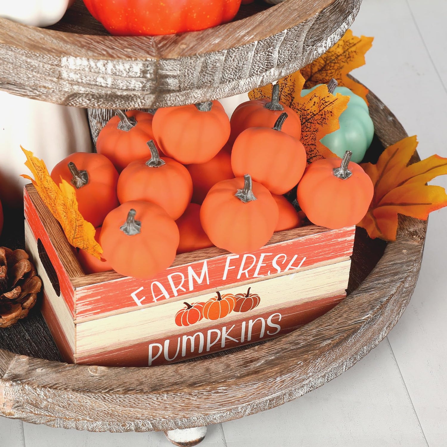 Whaline Fall Decorations for Home Indoor Fall Thanksgiving Table Decor Wooden Crate with Pumpkin Maple Leaf Wood Frame Small Blackboard Farmhouse Fall Kitchen Tiered Tray Decor Mantle Shelf Desk
