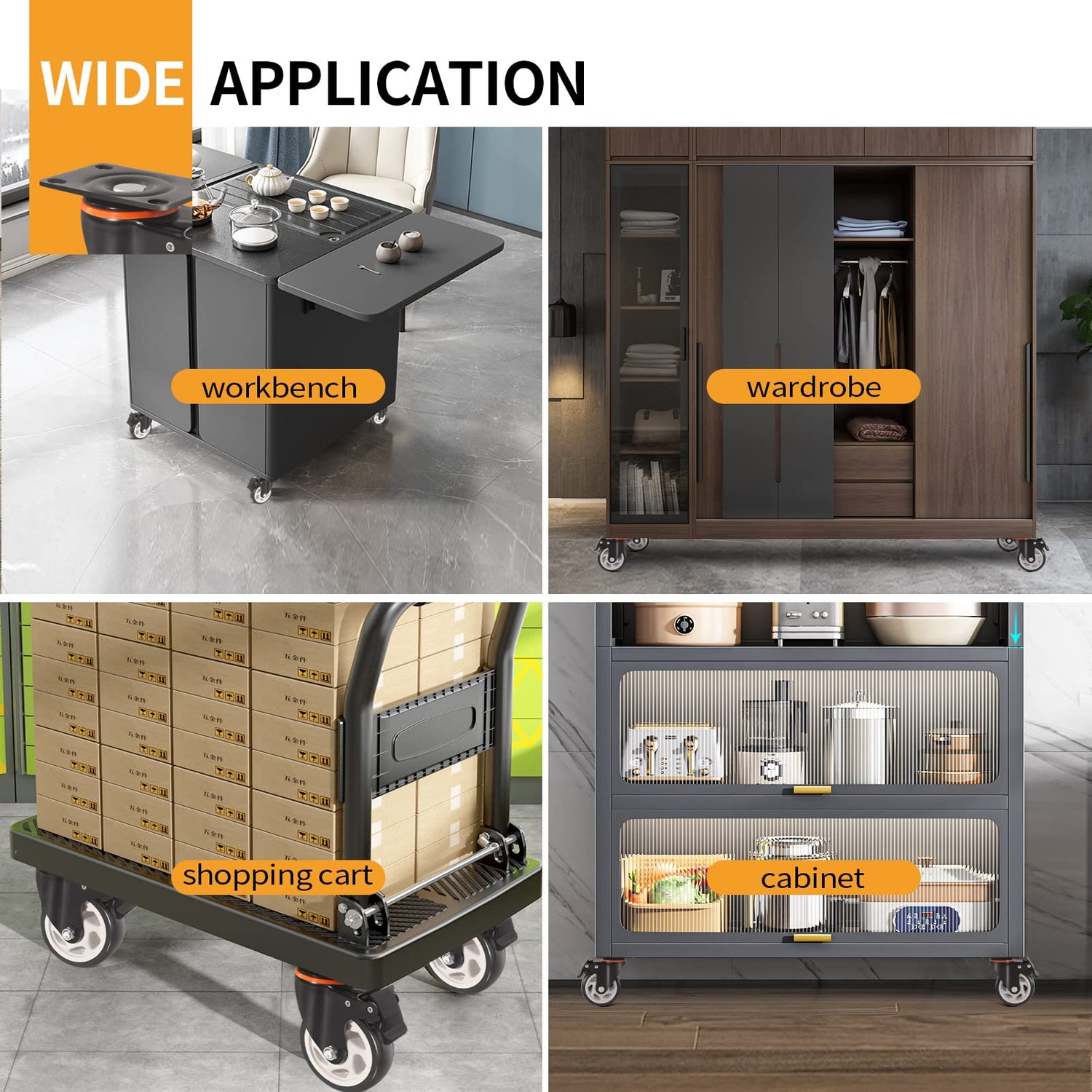 - 【FLEXIBLE & ROLLING QUICK SILENT】The workbench casters are 360-degree swivel, having internal bearings that are quick rolling and silent under heavy loads, which are good for transporting the mating equipment possible to any direction. Additional dust-proof ring will improve the caster wheels heavy duty performance by preventing dust coming into the bearings.