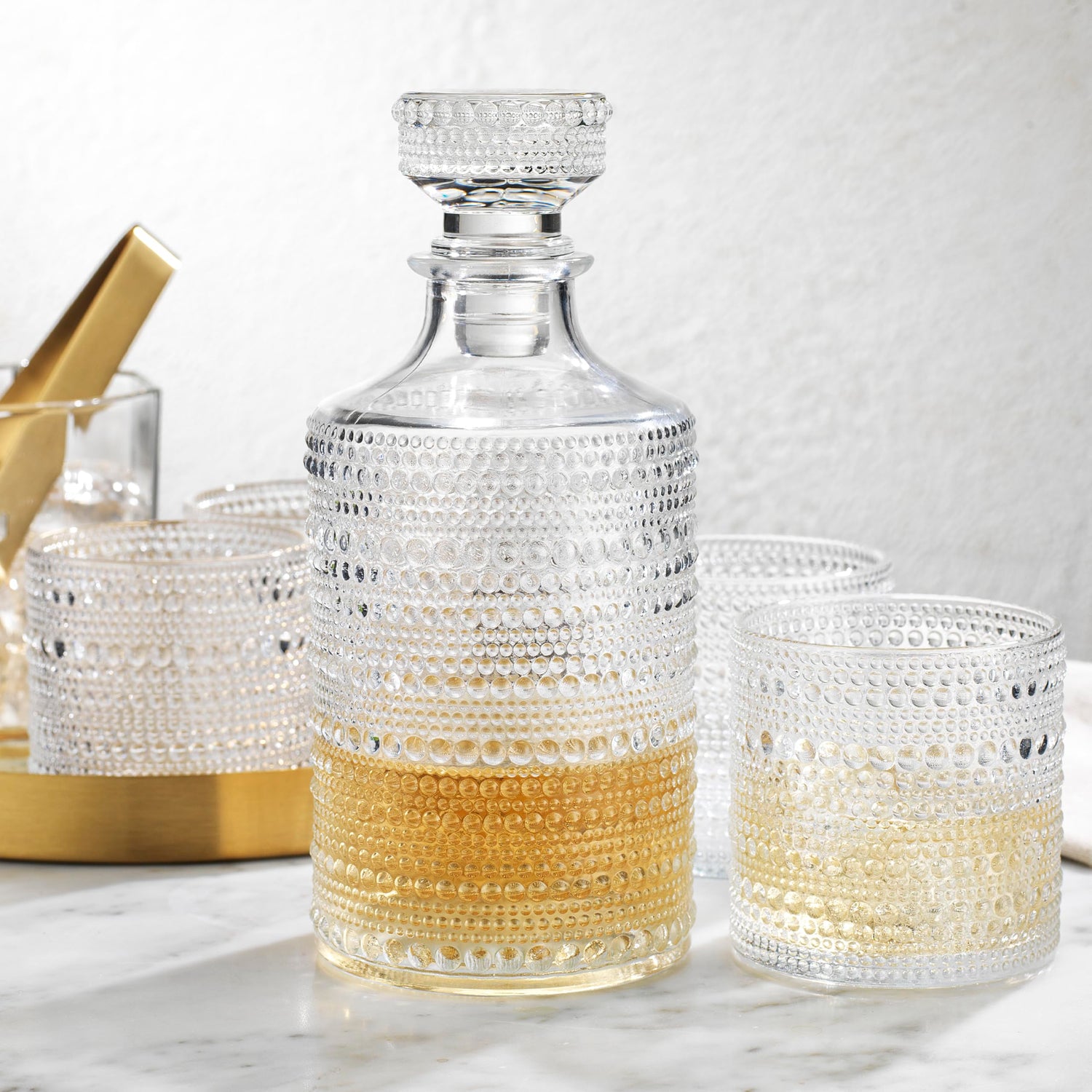 - Elegant Design: This set features an embossed glass decanter and 4 matching hobnail embossed whiskey glasses for a sophisticated look.