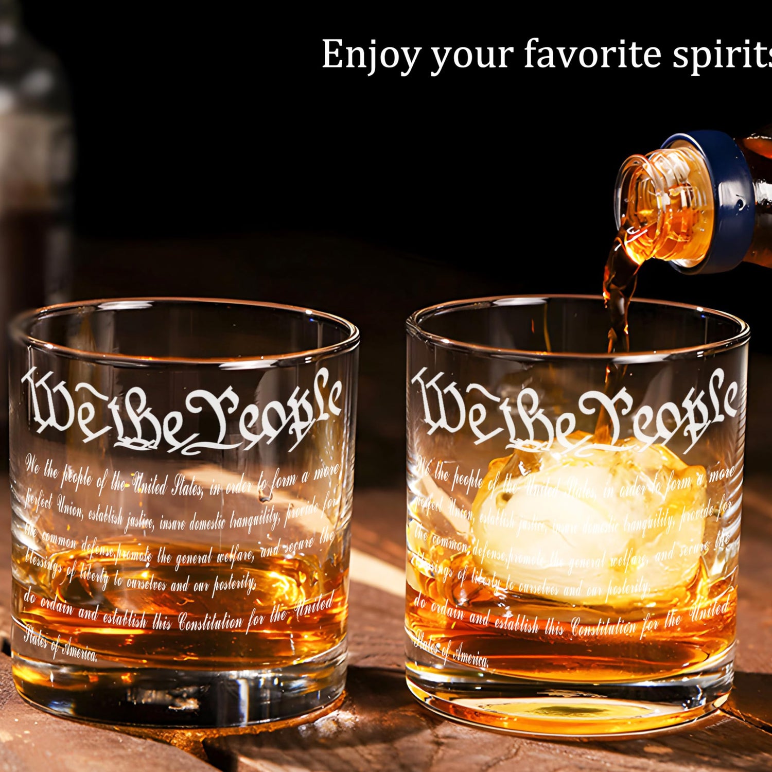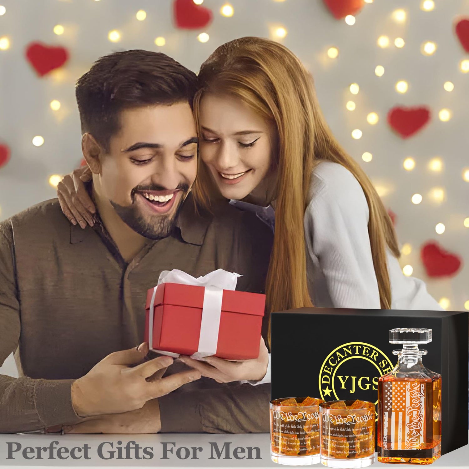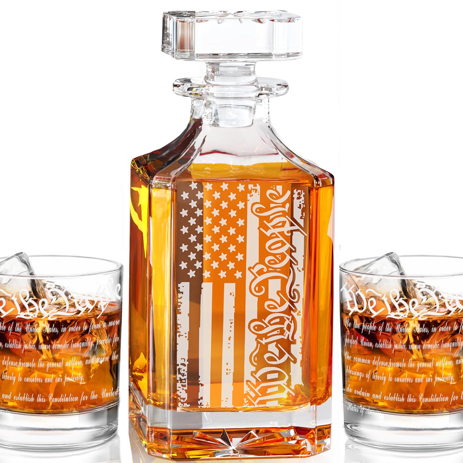 - UNIQUE GIFTS FOR MEN: If you want to give satisfying Christmas gifts for men, gifts for men who have everything, you can consider this personalized whiskey decanter set. This whiskey decanter is etched with We The People and American flag, come with 2 glass cups, make it is awesome gifts for any whiskey lover, veterans or American citizen
