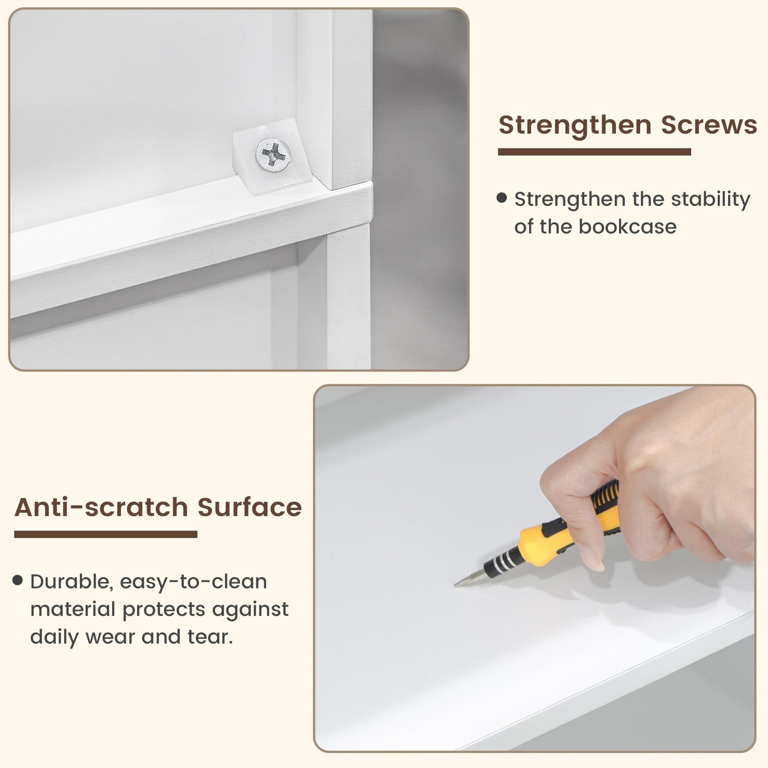 - Durable Construction for Long-Lasting Use: Crafted from high-quality MDF, this sturdy white bookcase is built to last. Fixed shelves offer superior stability compared to adjustable ones, ensuring a secure and solid structure. Each shelf supports up to 66 lbs, making it perfect for both lightweight and heavier items.