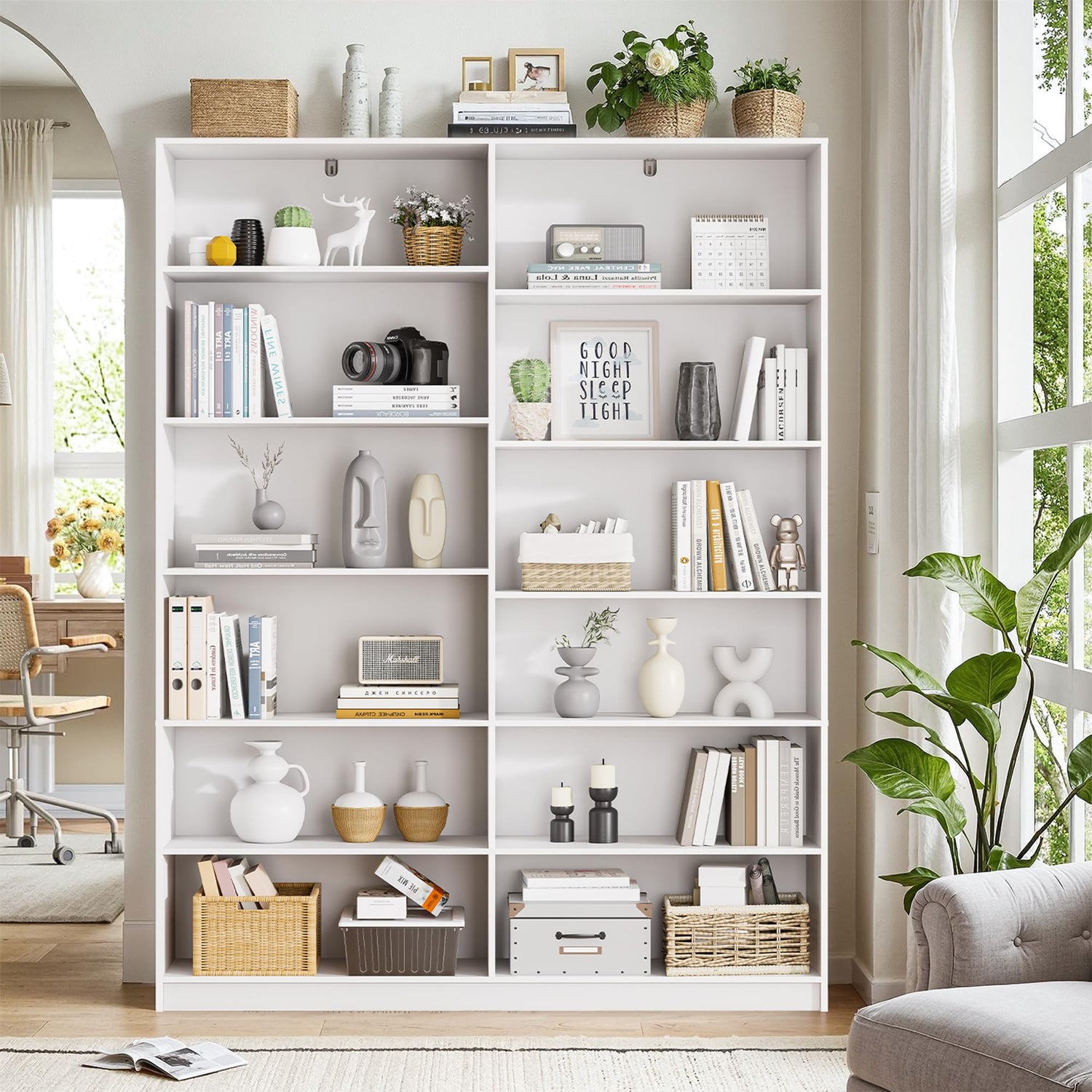 - Ample Storage with Triple Column Design: Featuring 18 spacious open shelves across three columns, this 6-tier bookshelf provides generous space to organize books, decor, media, and more. The versatile layout keeps your home tidy while showcasing your favorite items beautifully. Dimension: 94.4”W x 21.2” D x 141.6”H.