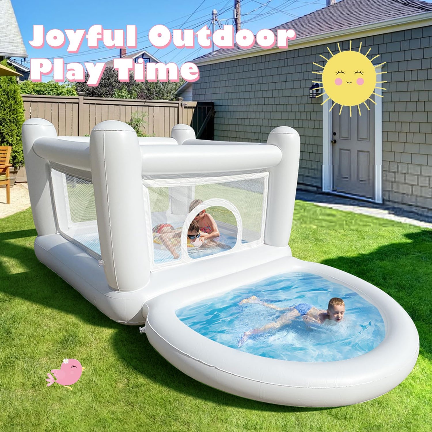 White Bounce House, Bounce House for Kids 3-6 with Ball Pit Pool, Toddler Mini Bounce House, Indoor Outdoor Inflatable Bounce House for Kids and Adults (Without Blower)