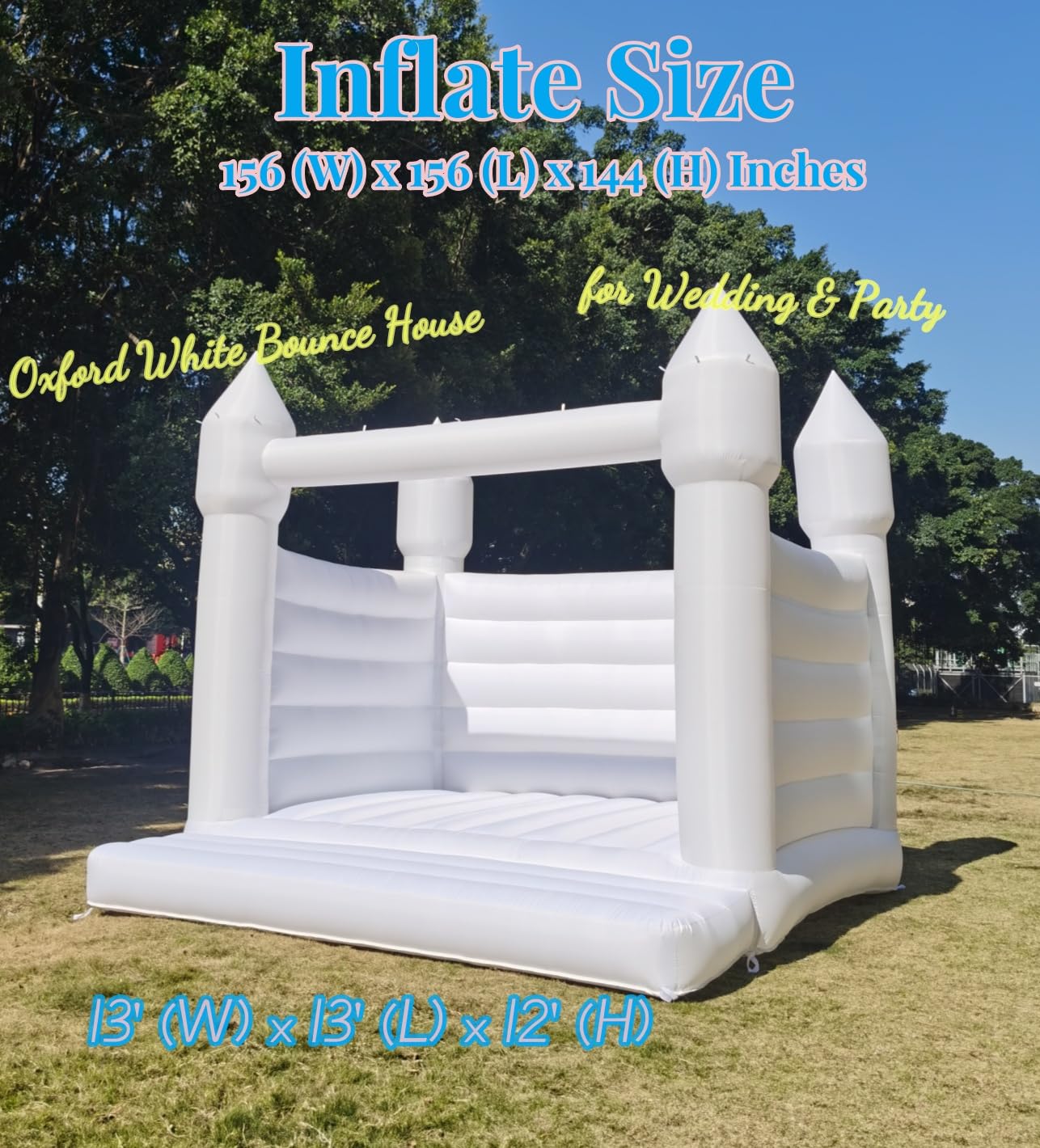 White Bounce House, Oxford Fabric Bounce House Castle with Blower ,Perfect for Kids, Family, Wedding (13x13x12FT, Weddings)