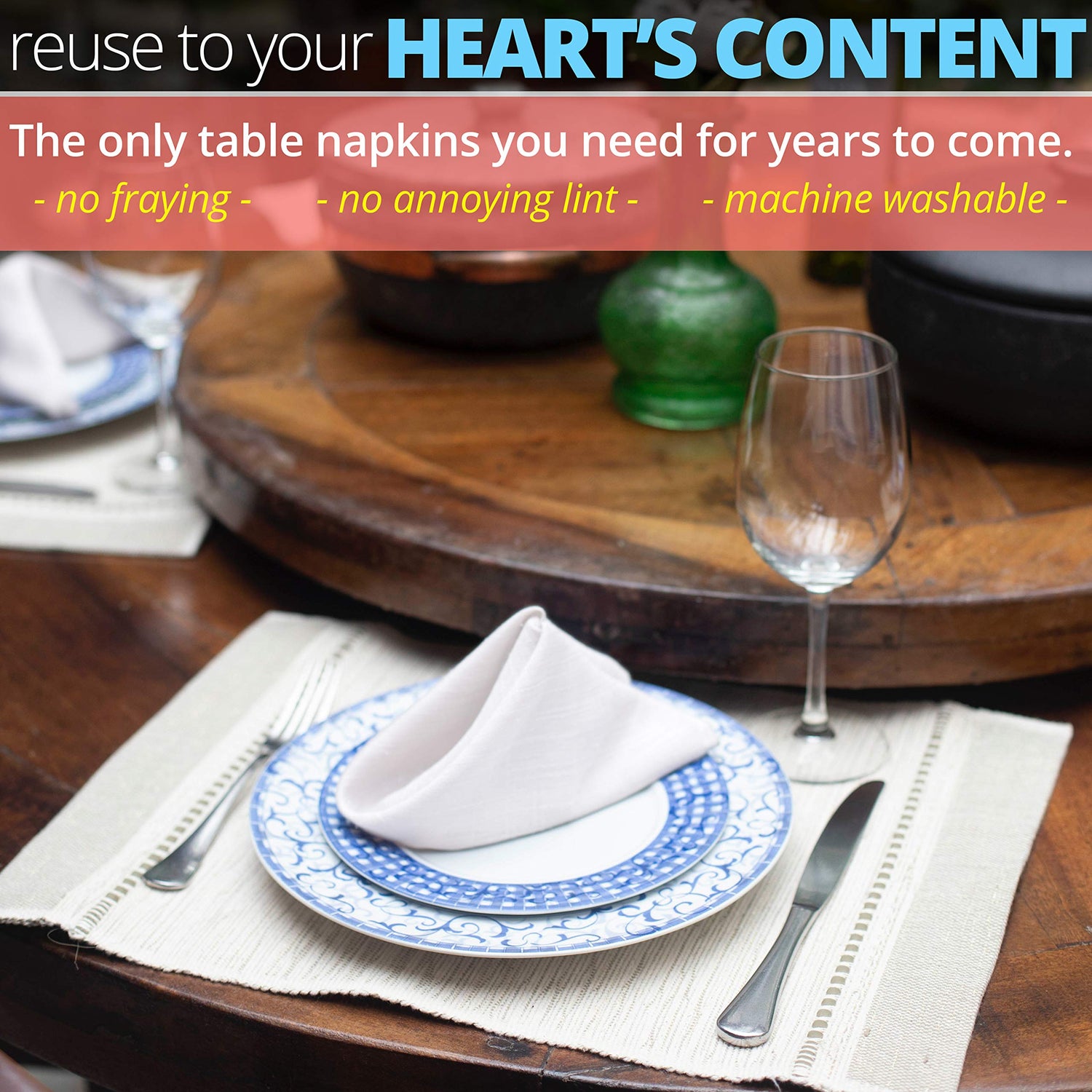 - ✅ REUSE TO YOUR HEART'S CONTENT - These 20" x 20" napkins are crafted from 100% natural and strong cotton. The only table napkins you need for years to come; it will never fray or leave annoying lint.