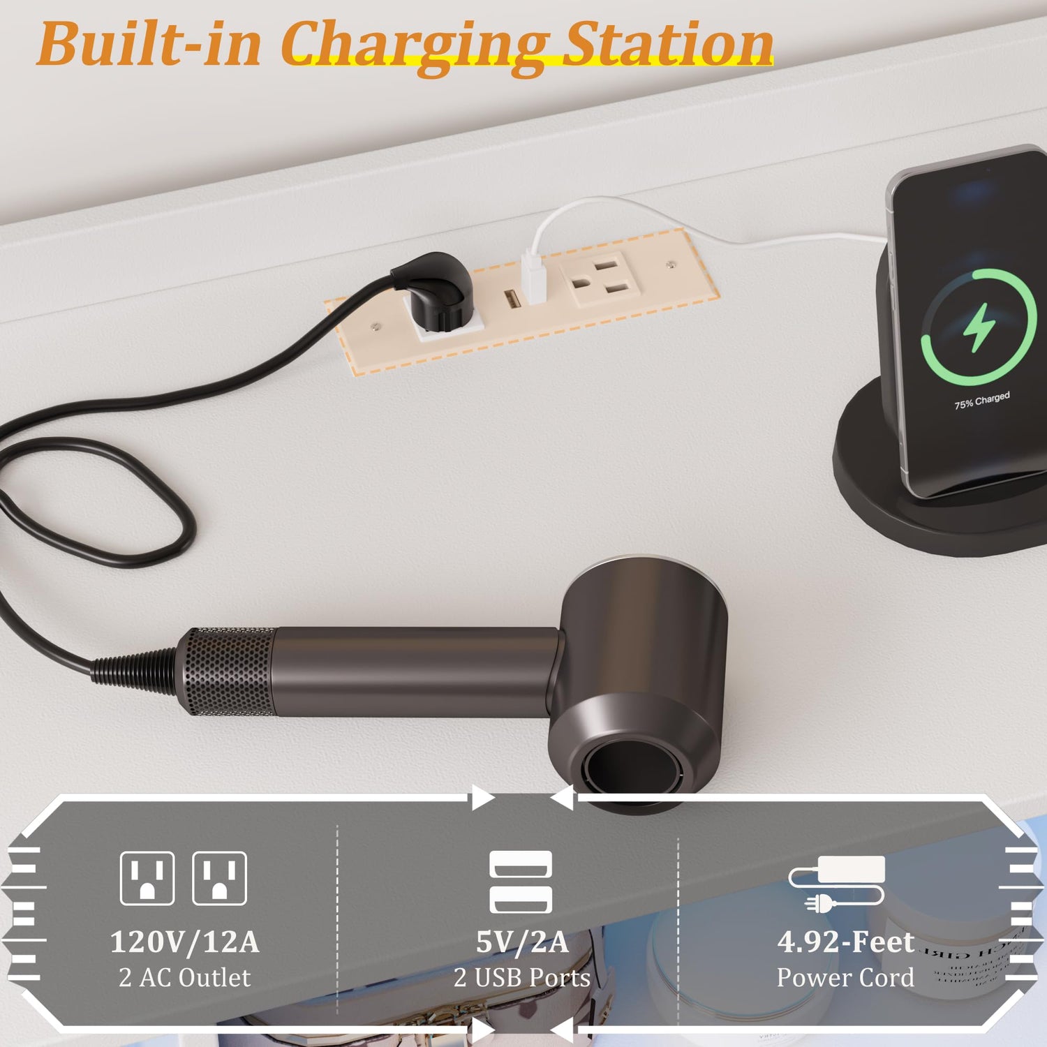 - Chest of Drawers with Charging Station: This dresser features a handy charging station with 2 standard outlets, 1 USB port, and 1 Type-C port; Easily power your lamp and charge your devices simultaneously