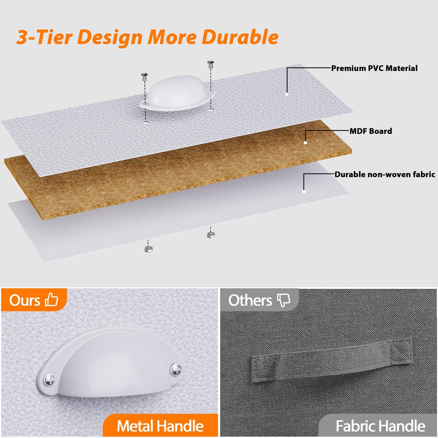 The upgraded fabric drawers are equipped with easy-pull arch handles and are crafted from high-quality, non-woven fabric. This lightweight and breathable material helps prevent dust accumulation while making installation a breeze.