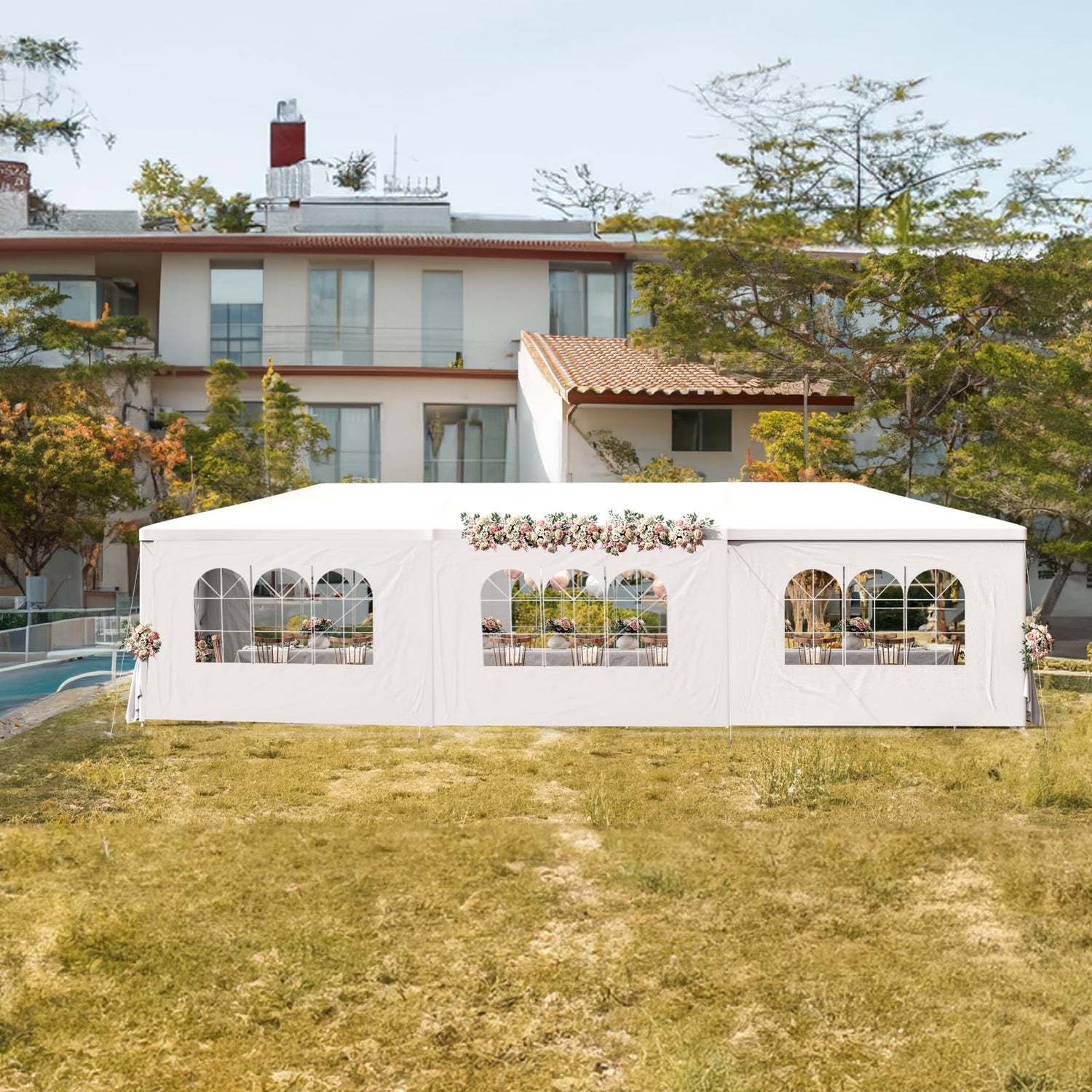 - Easy to Assemble & Portable: This party tent's smart design ensures a quick and hassle-free assembly process with all necessary accessories included. Lightweight and portable, it can be conveniently transported and set up in various locations, providing flexible shelter options for your events.