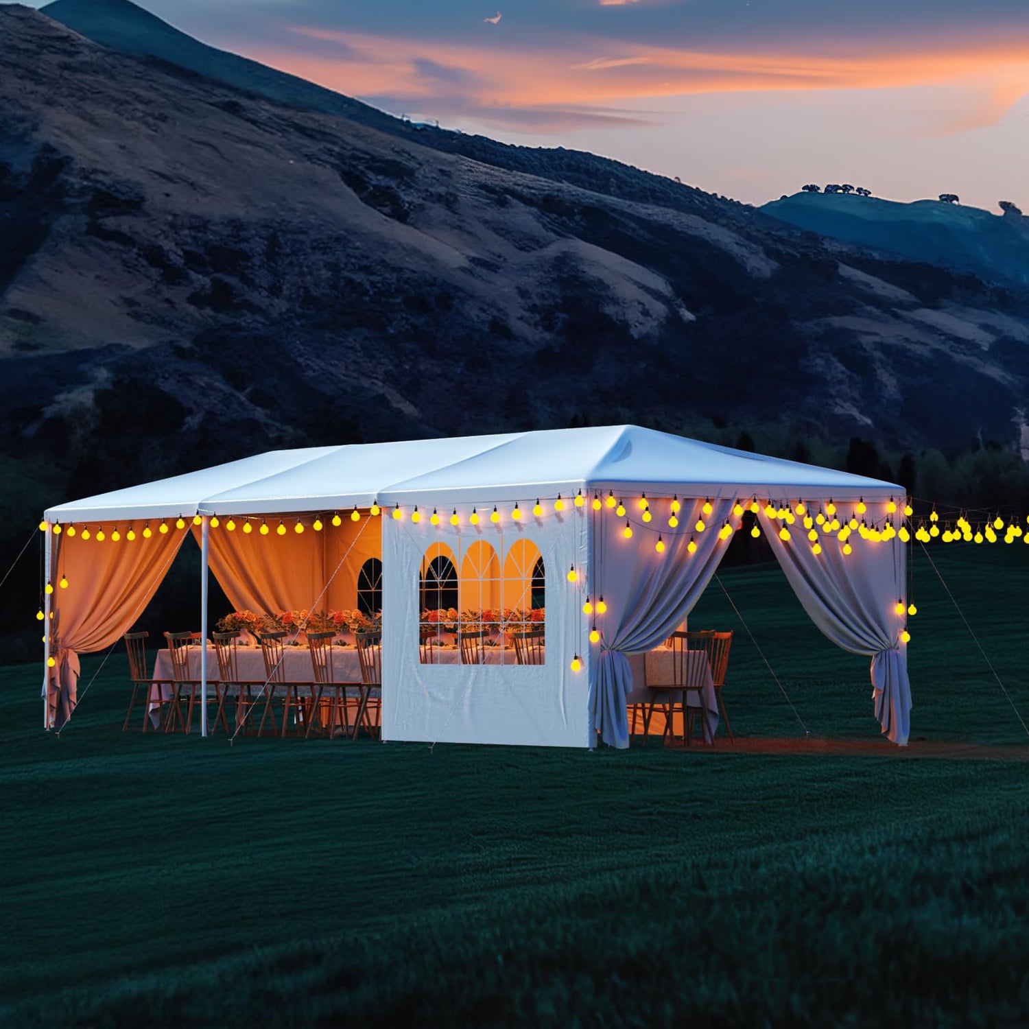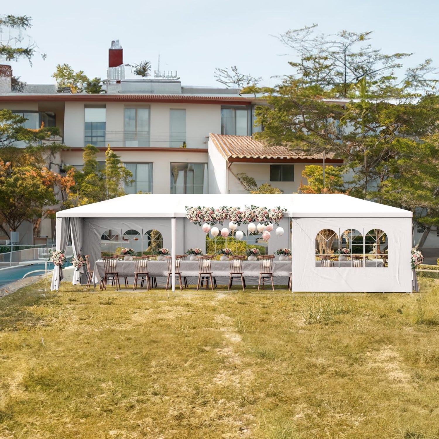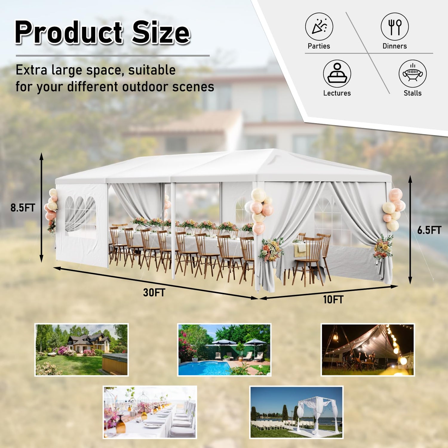 White Party Tent 10x30 Outdoor Canopy Tents for Parties Heavy Duty Patio Gazebo Shelter with 5 Removable Sidewalls Wedding BBQ Events Tent for Birthday Graduation Backyard Garden