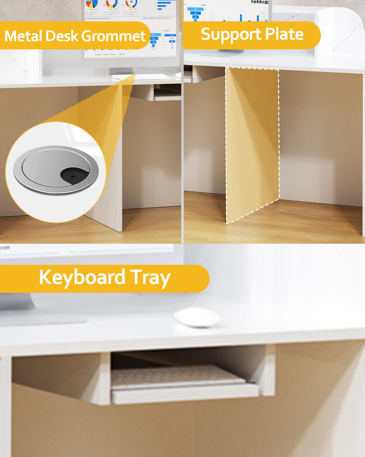 - Smart Storage Solutions: Stay organized with integrated features like a lockable drawer, storage cabinet, keyboard tray, metal desk grommet, and a small raised service ledge. This reception desk with counter keeps essentials secure and accessible, perfect as a secretary desk or business desk for boosting productivity in any commercial setting