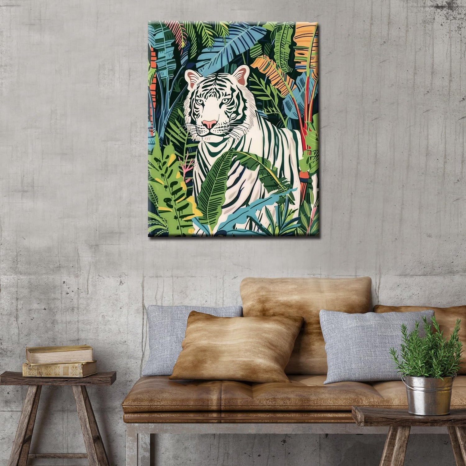 White Tiger Paint by Number for Adults,Forest Wildlife DIY Oil Painting Kits on Canvas with Brushes and Acrylic Pigment Animal in Tropical Jungle Picture Home Decor 16x20inch Nordics Gift (Frameless)