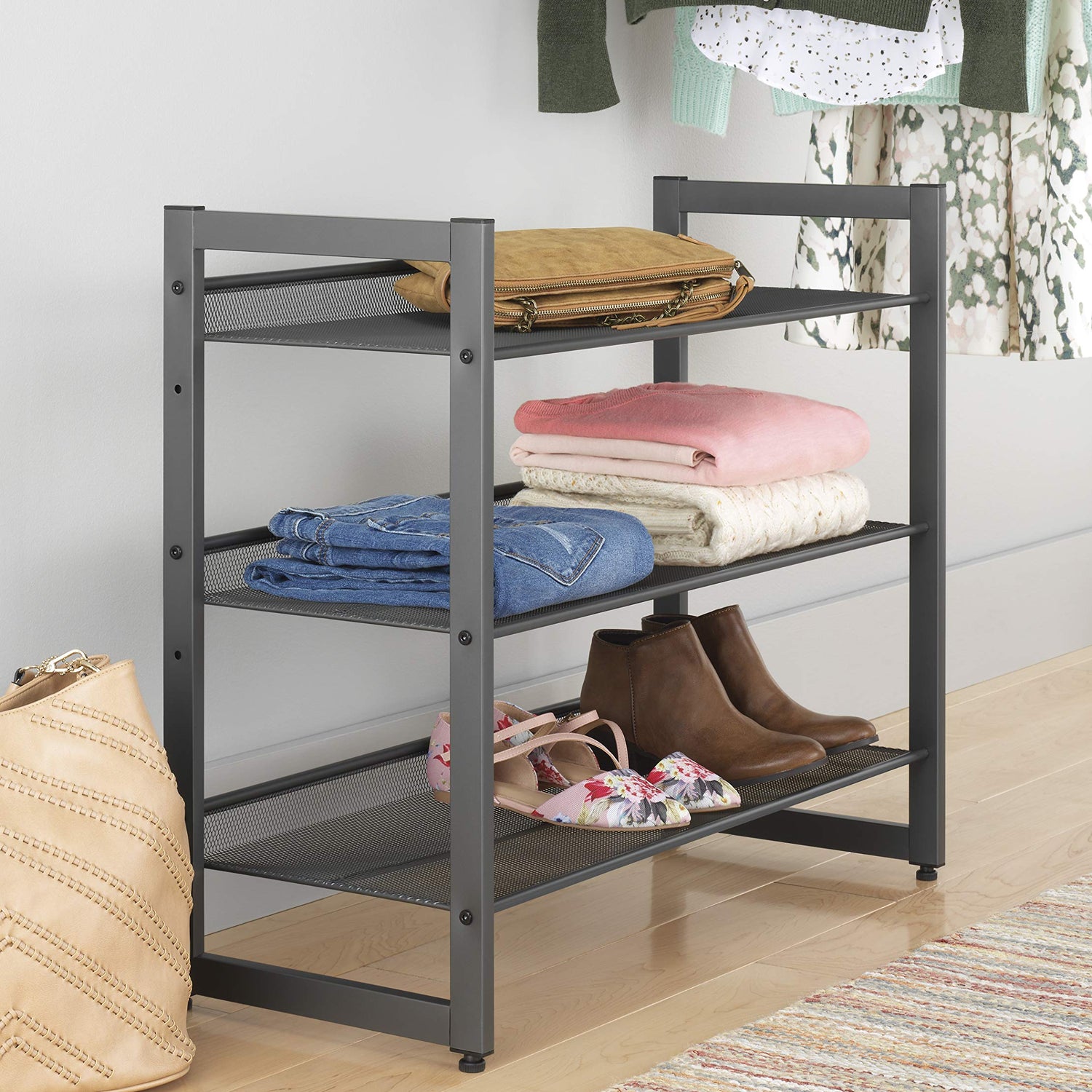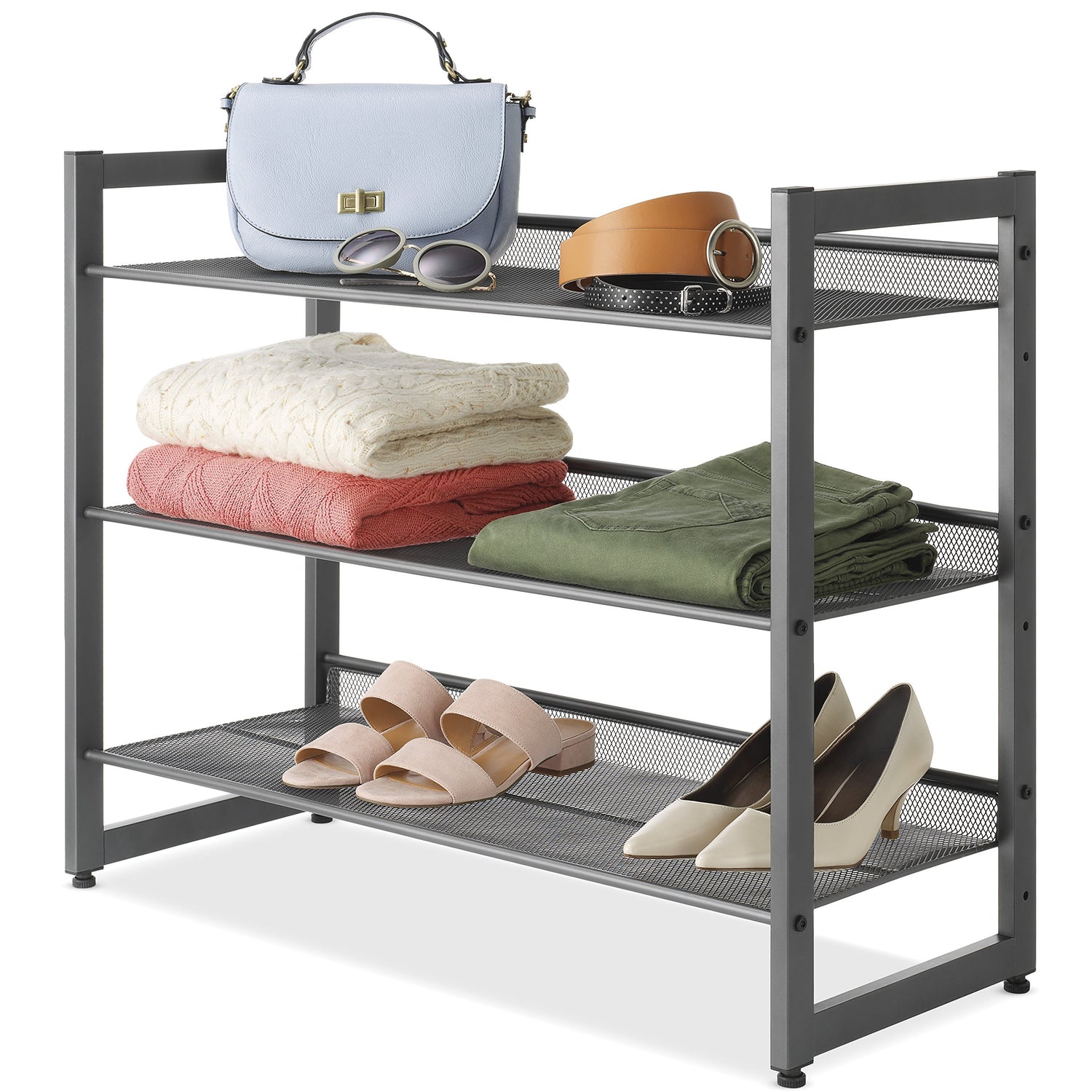 Whitmor Steel Mesh 3-Tier Shoe Rack, Gunmetal Gray