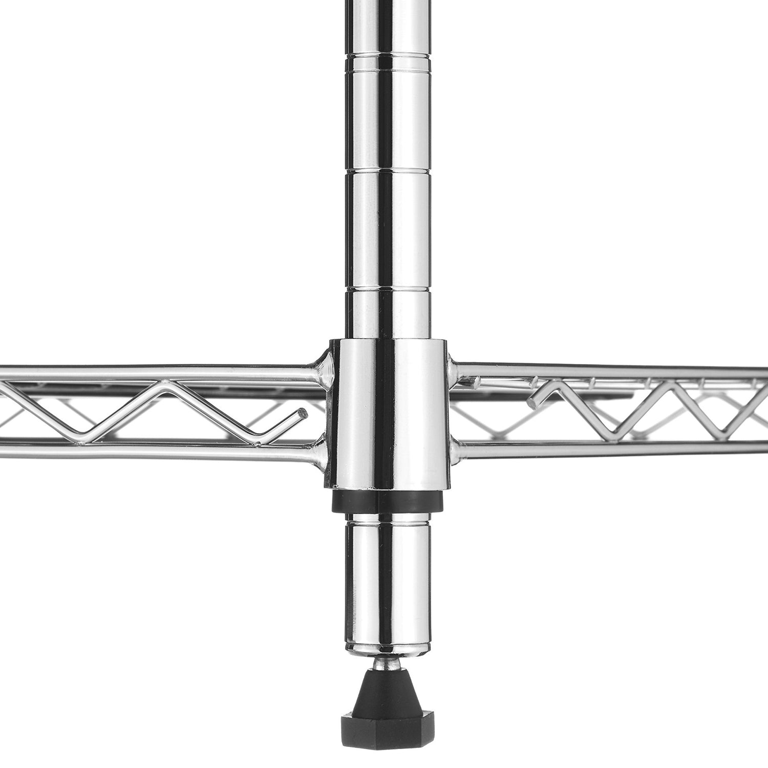 - Adjustable hanging bar for extra storage includes 4 chromed hooks for dish towels, pots, pans and more