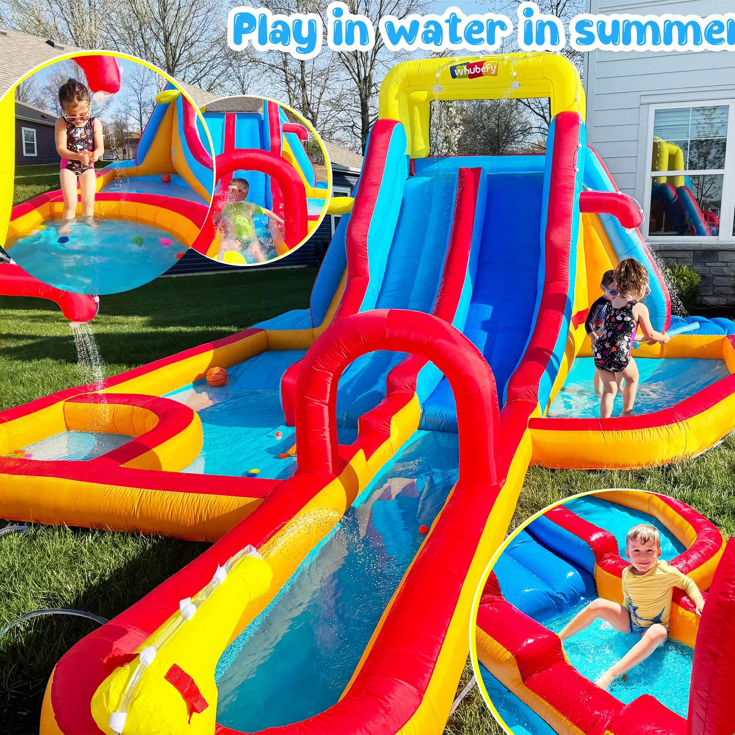 Whubefy 18Ftx14Ft Inflatable Water Slide Park Kids 3-12, Big Waterslide Bounce House with Extra Long Slides, Splash Pool, Kiddie Pool, Blow Up Water Slides Inflatables for Kids Backyard Water Fun