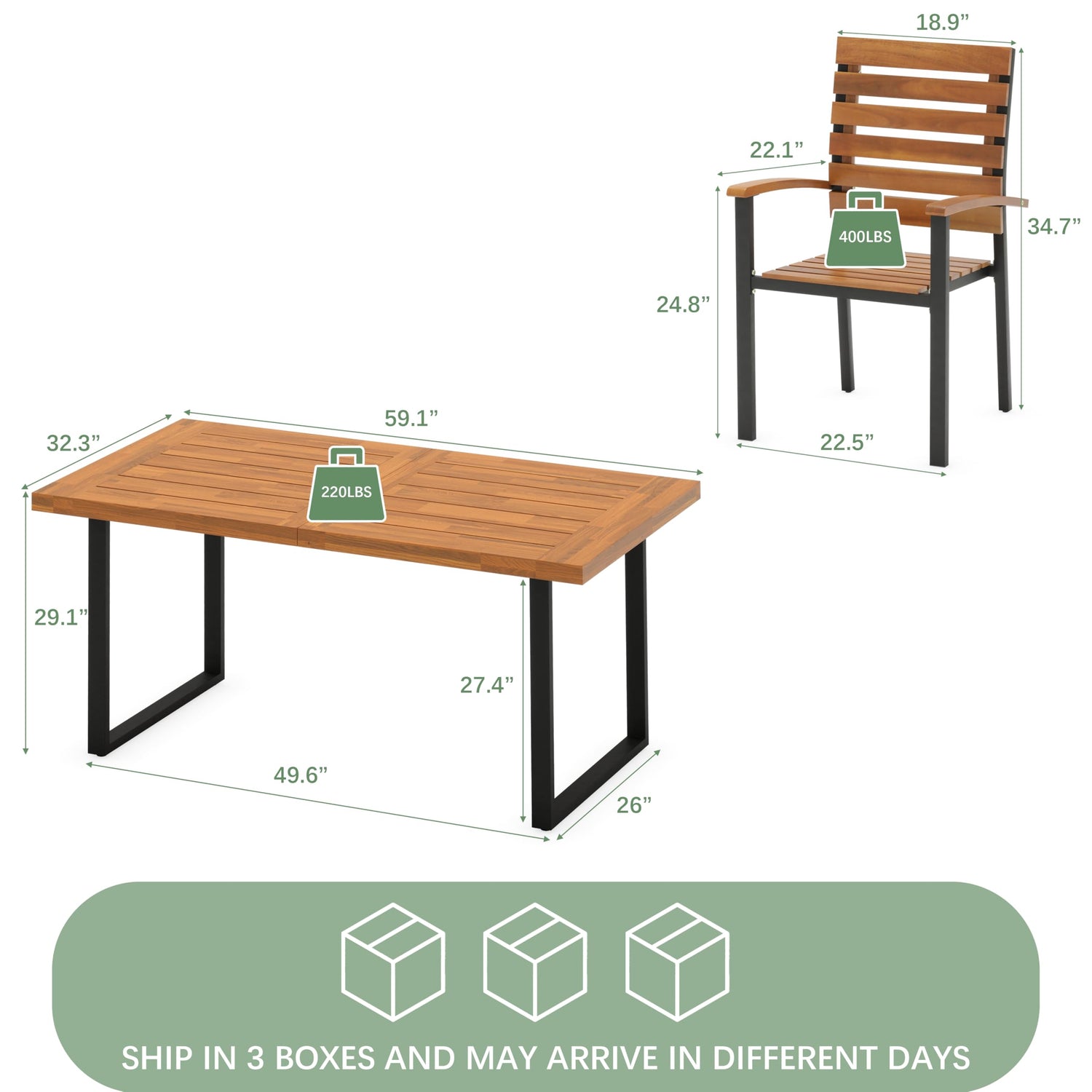 WiberWi 7 Piece Outdoor Dining Set for 6, Acacia Wood 59.1" Patio Table and Chairs Set with Metal Frame, Patio Dining Furniture Set for Garden, Balcony, Backyard, Poolside, Brown & Black