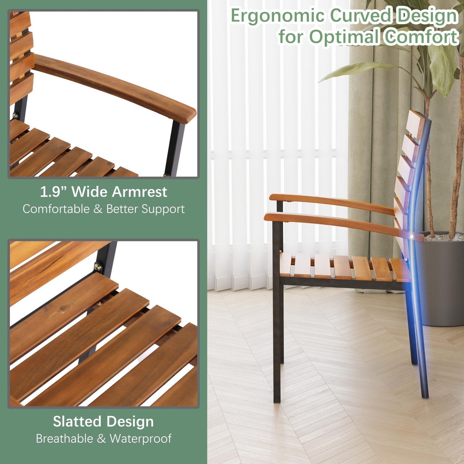 - Premium Solid Acacia Wood---The tabletop, chair seats and backs are made from natural solid acacia wood, showcasing fine craftsmanship with excellent durability and load-bearing strength. The waterproof surface enhances longevity, while the open-slat design prevents water accumulation and speeds up drying after rain, adding both beauty and function.