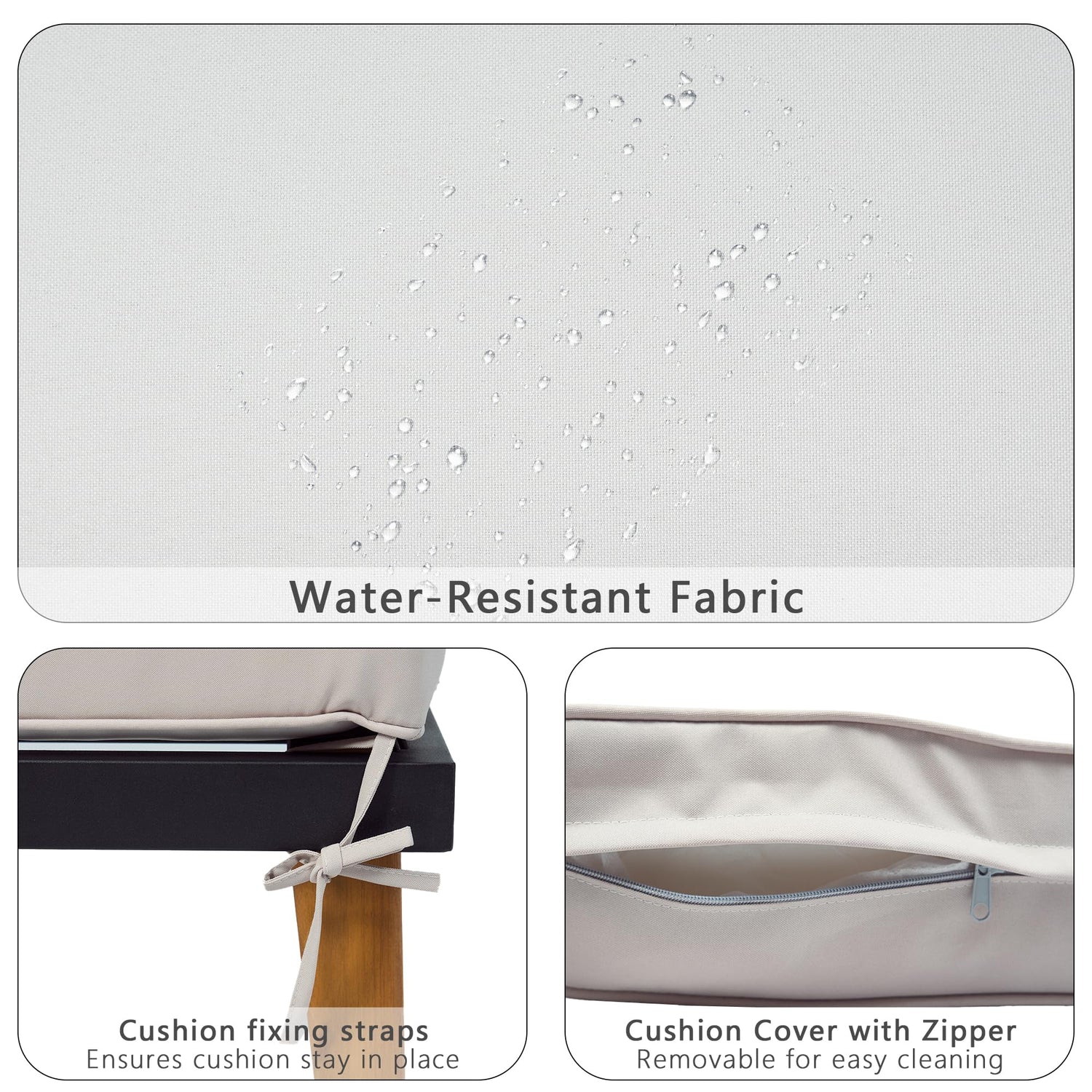 - Solid Acacia Wood---The table top and legs are crafted from natural solid acacia wood, showcasing exquisite craftsmanship with superior load-bearing capacity and durability. Waterproof features ensure long-lasting use, while the natural wood elements add a decorative touch to this patio conversation set. The open-slat design prevents water buildup and speeds up drying after rain. Two matching side tables offer convenient spots to place drinks, snacks, or décor.