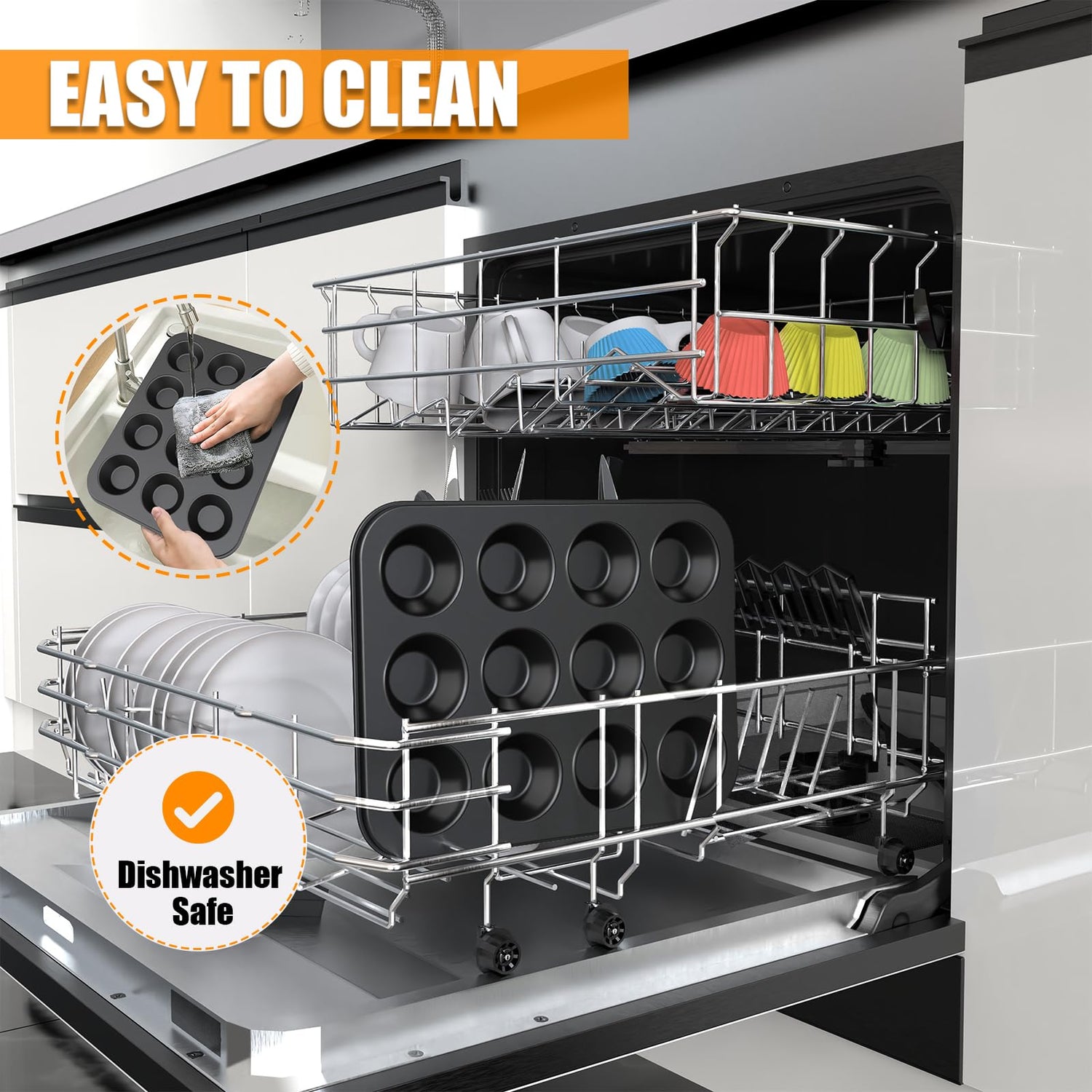 - NON-STICK MATERIAL: BPA-Free cupcake pan features non-stick and scratch-resistant coating, used in conjunction with silicone cup liners, which makes it easy to remove the cakes and ensures that the bottom remains non-stick, keeping the cakes intact
