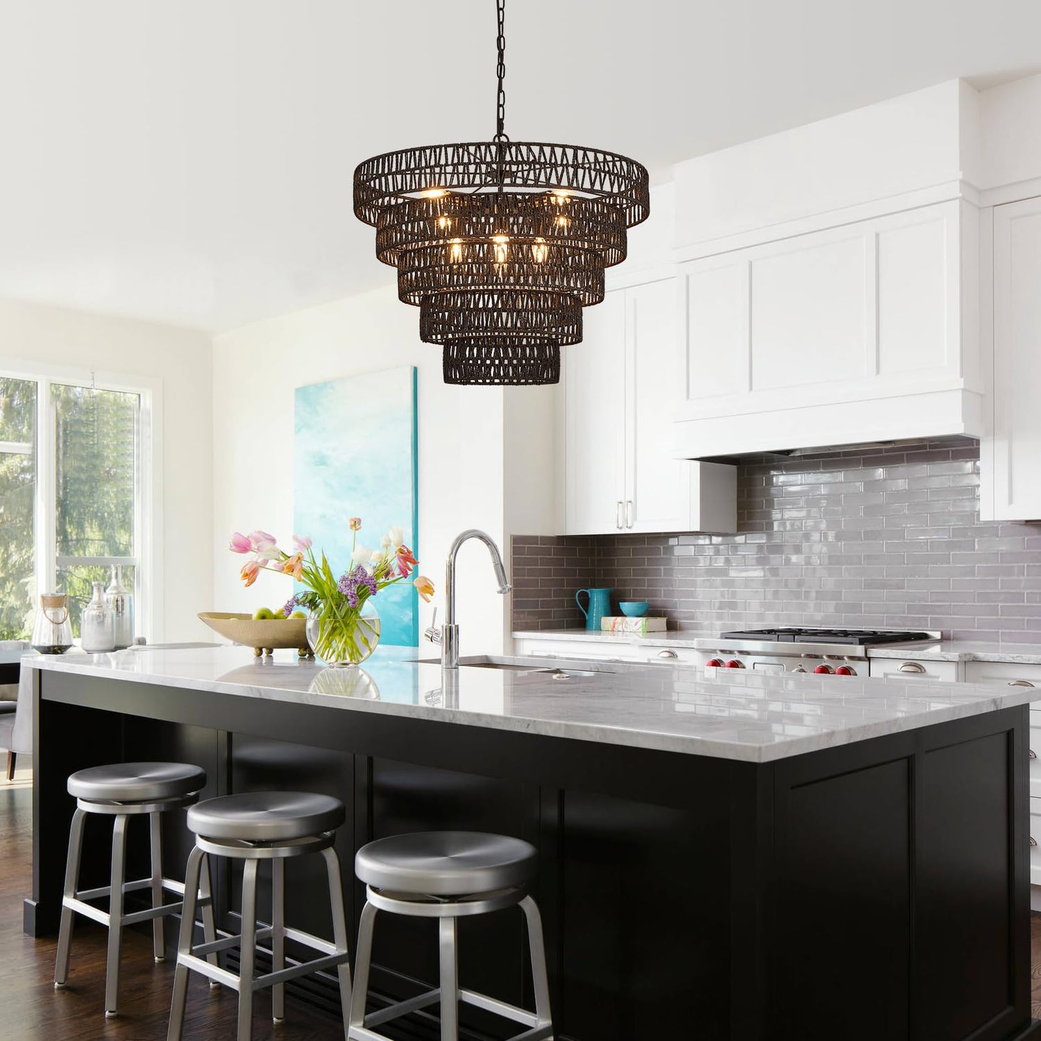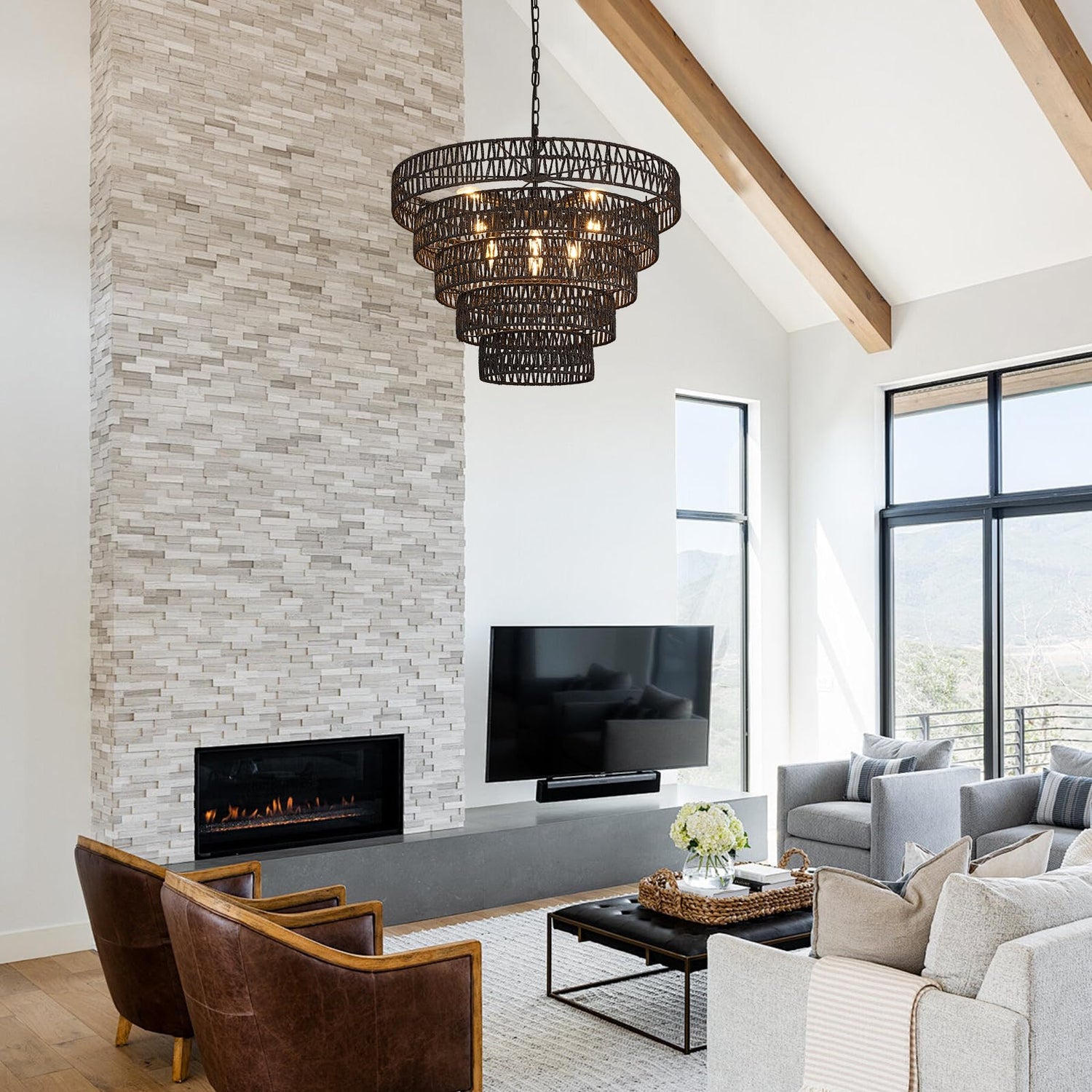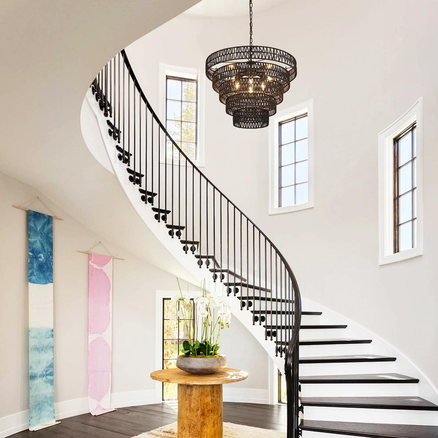 - 【Perfect for Your Home】With its retro farmhouse style, this rattan black chandelier light fixture seamlessly blends into various décor themes. This rattan chandelier features a 8-light design, providing abundant illumination for your living space. Whether you install it in the dining room, living room, kitchen or bedroom, it ensures a warm and inviting atmosphere. The well-distributed light enhances the overall ambiance, making it perfect for both intimate gatherings and everyday living.