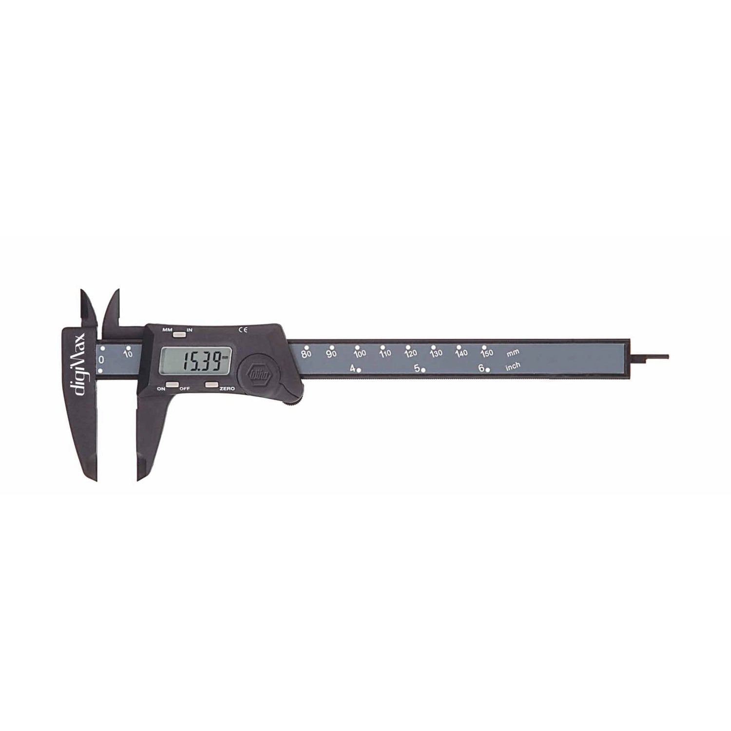 Wiha 41101 digital caliper digimax non-metallic high tech material with 60 percent fiber glass content. Five digit digital display with 7.5mm numeral height for easy reading. For outside, inside, depth and step measurements. Switches on automatically when used and switches off automatically after five minutes of non-use. Zero setting possible in every position for quick comparison measurements. Reading 0.01mm / 0.0005 Inches