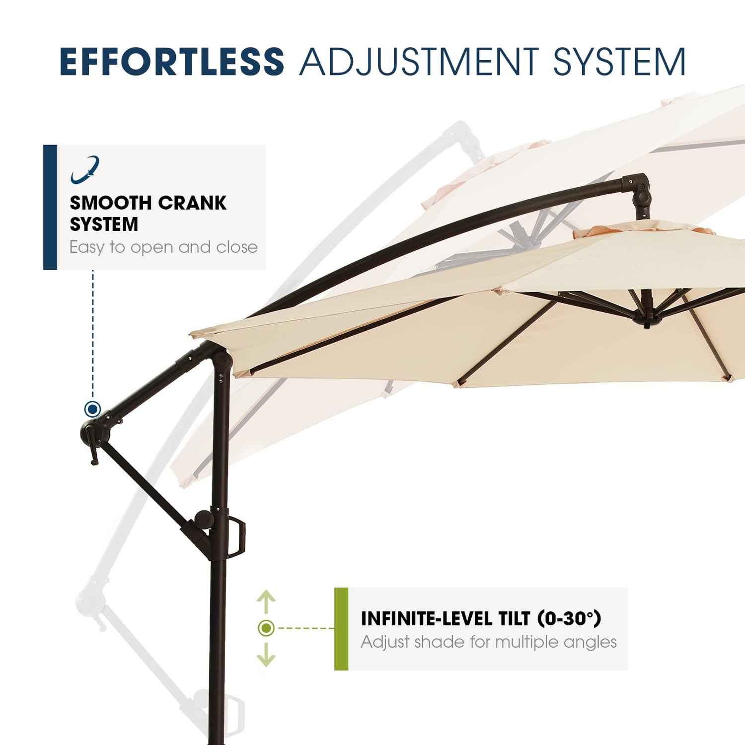 wikiwiki 10ft Patio Umbrella with Base Included, Outdoor Offset Cantilever Umbrella, Infinite Tilt, Crank and Cross Base, Beige