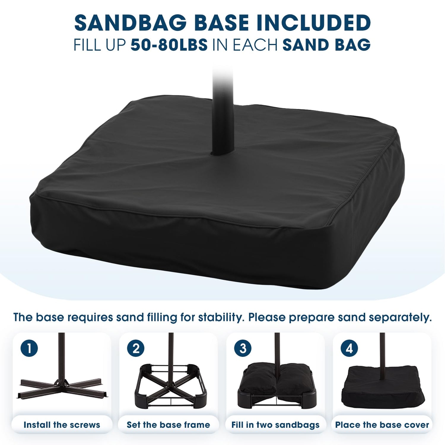 - BASE INCLUDED: This outdoor umbrella has base included that can hold up to a maximum of 80 lbs of sand. Please prepare sand separately.