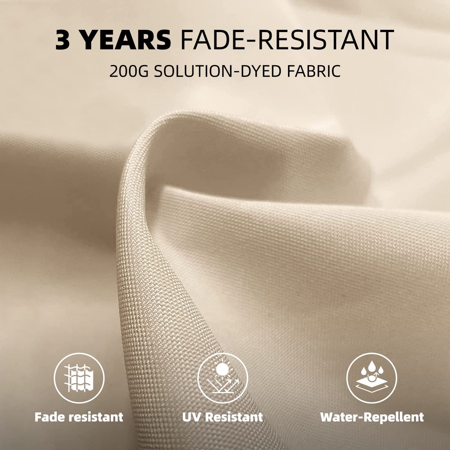 - EXCELLENT RECYCLED FABRIC CANOPY: This patio umbrella canopy is made of recycled Polyester Draw-Texturing-Yarn with a US Standard AATCC 16 Grade 5 colorfastness rating to withstand fading. Besides, this premium material provides outstanding UV resistance and water resistance.