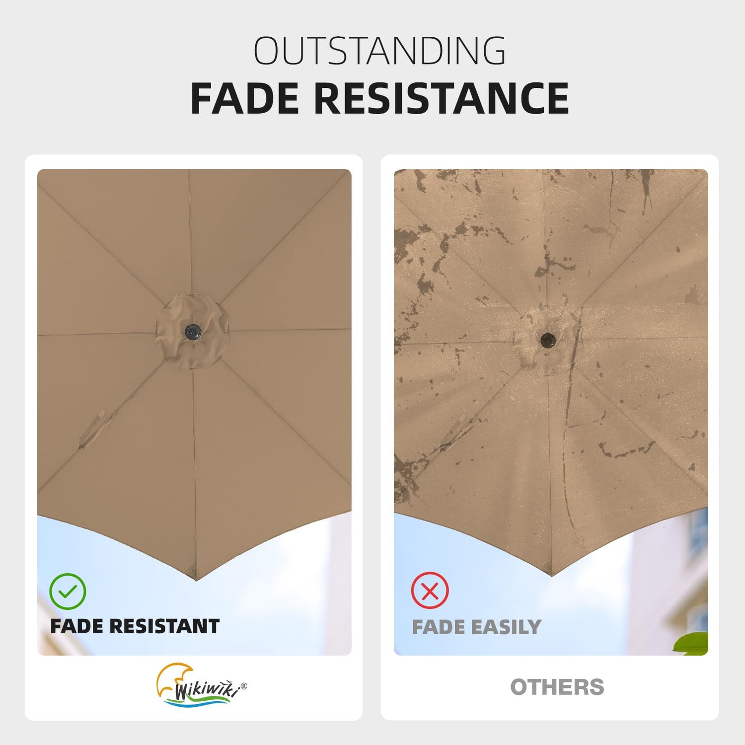 - UPGRADED THICKEN FABRIC: Wikiwiki patio table umbrella canopy is made of 200 G polyester fabric with US standard AATCC 16 light fastness,premium material provides good UV resistance.