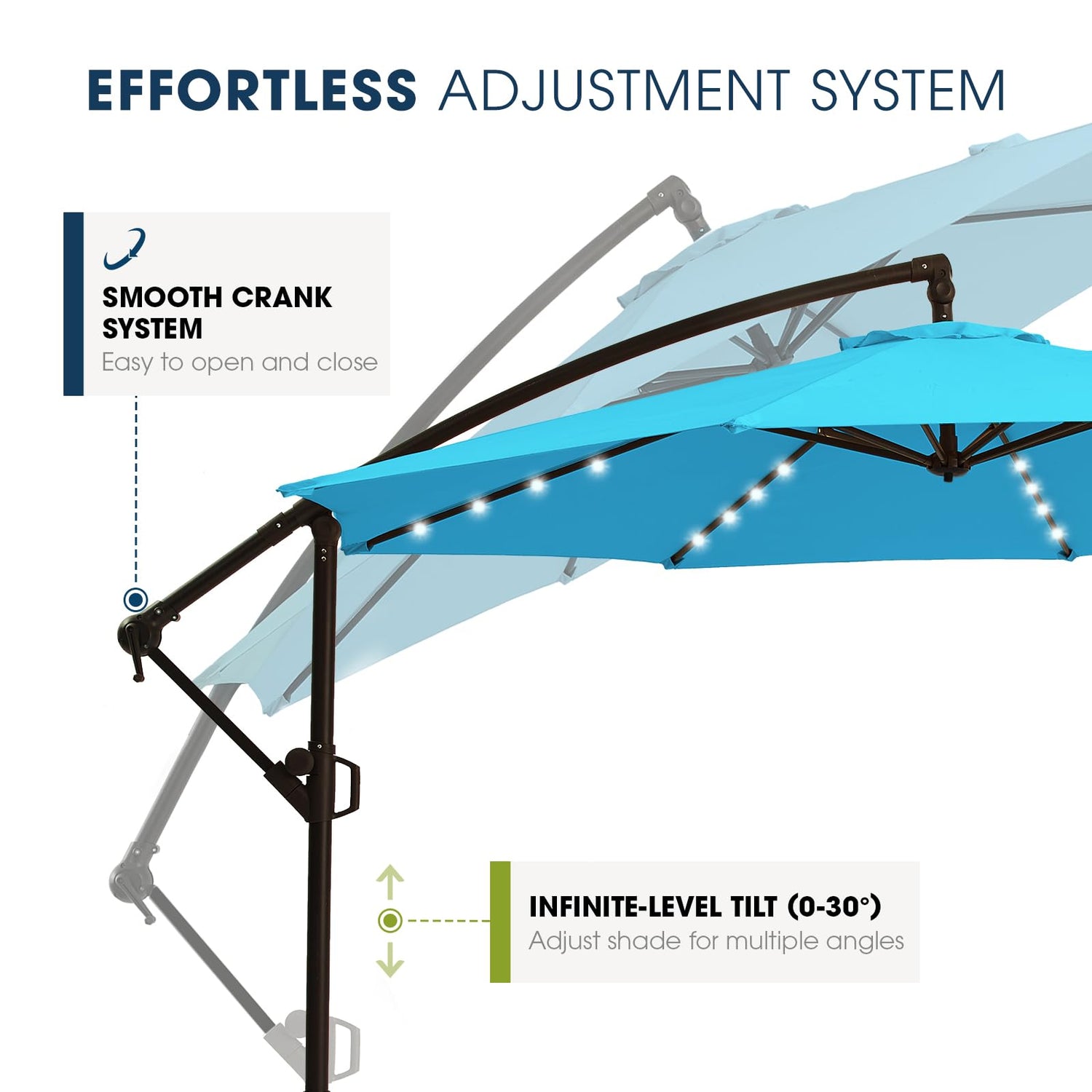 • CUSTOMIZABLE LED PATIO UMBRELLA: Stay cool and comfortable in your outdoor space with this adjustable LED umbrella, which features a simple crank system and for smooth opening and closing tilt function that lets you customize the shade as desired.