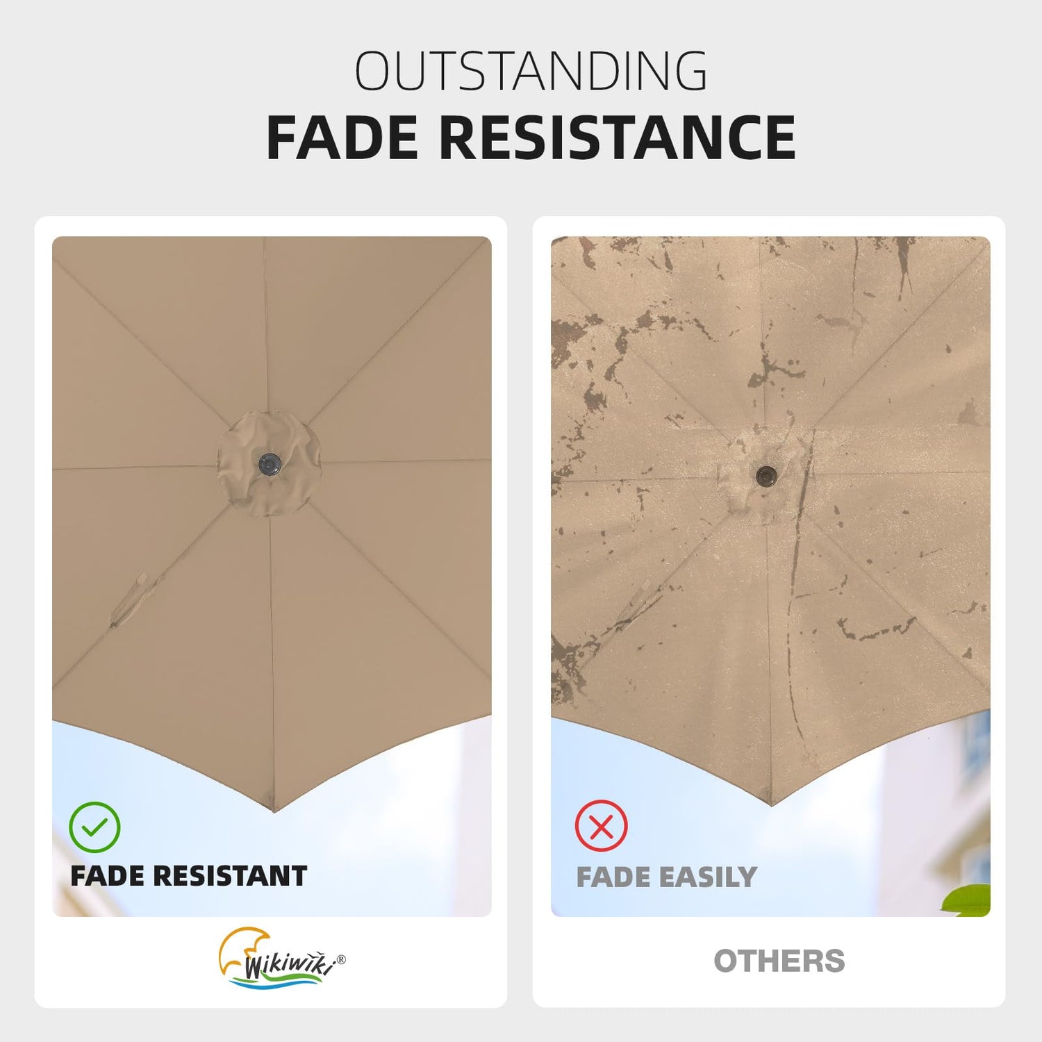- UPGRADED THICKEN FABRIC: Wikiwiki patio table umbrella canopy is made of 200 G polyester fabric with US standard AATCC 16 light fastness,premium material provides good UV resistance.