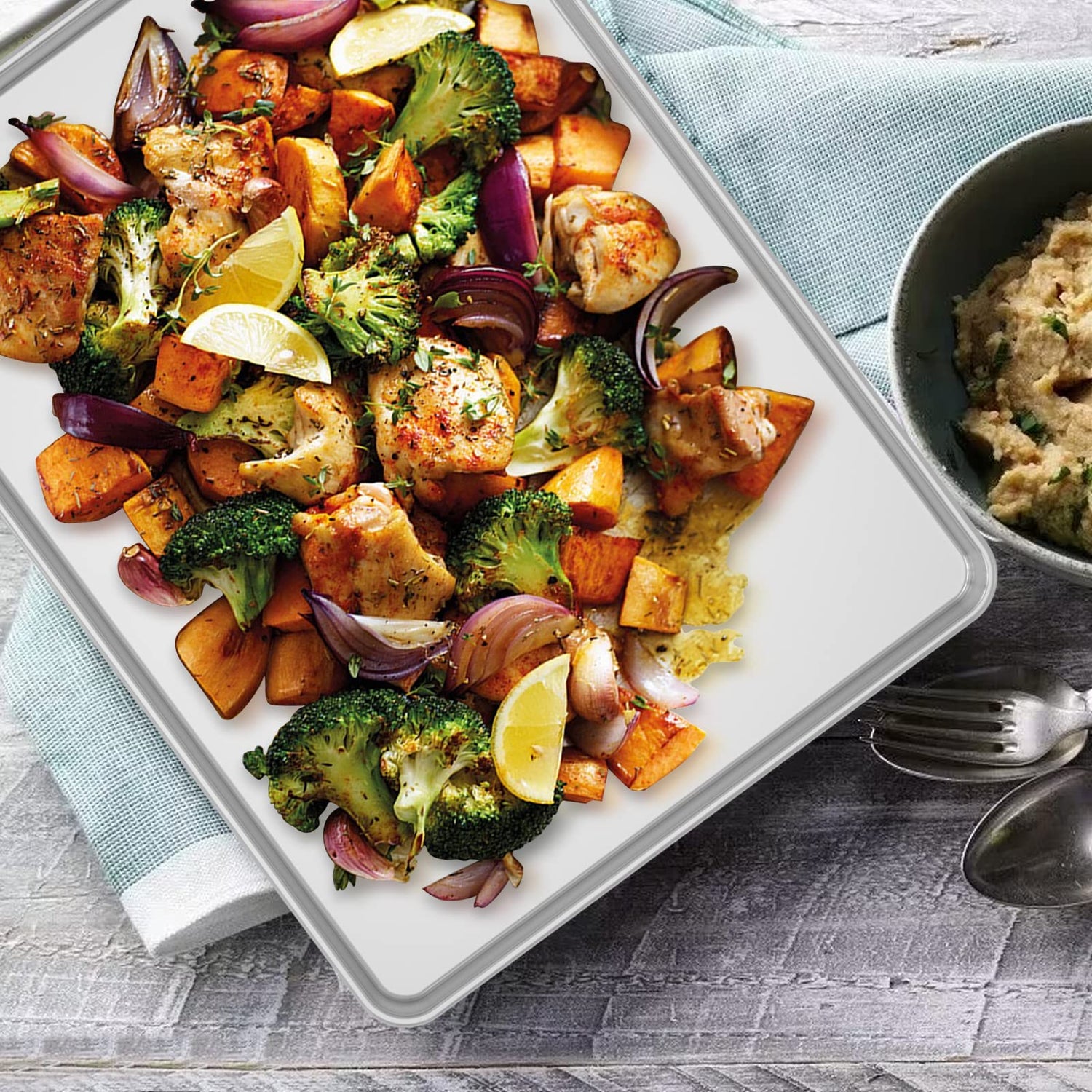 • CRAFTED: Our stainless steel baking sheet has superior mirror finish to reduce the risk of food sticking; Smooth roll edges make it comfortable to hold and transfer