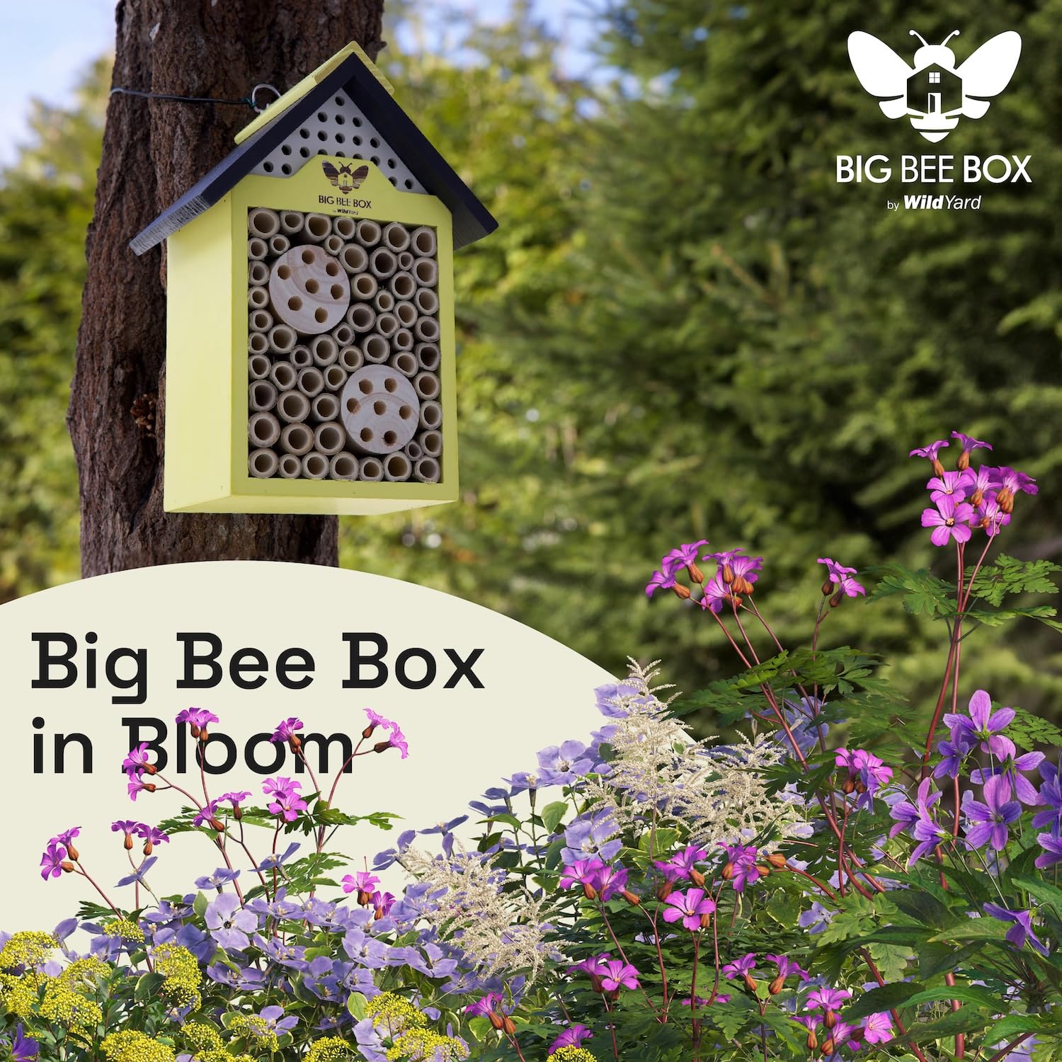 WildYard Bee House - Weather Resistant Natural Wood Construction Mason Bee House - Simple Installation, Bee Box for Power Pollinators, Ideal Bee Houses for The Garden
