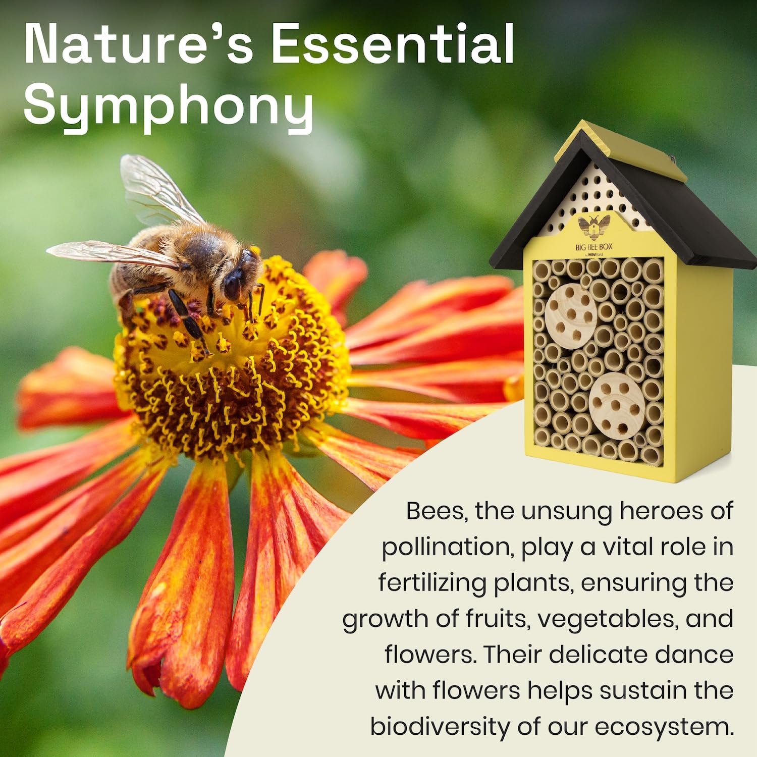 - Power Up Your Pollination: Attract a symphony of pollinators and watch your garden thrive with the Bee Haven. Our vibrantly colored bee hotel provides the perfect nesting ground for solitary bees, promoting biodiversity and boosting your garden's bounty