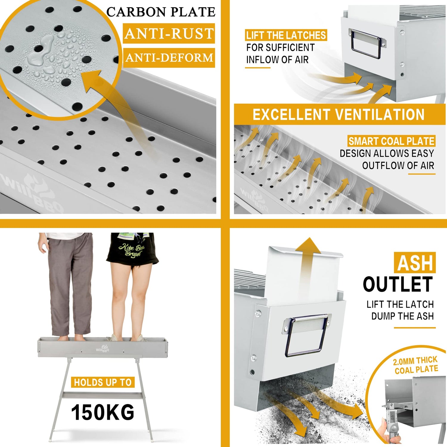 - 【Excellent Ventilation Design】Air vents on both ends of the charcoal grill allow for proper temperature adjustment and control.thus, heat can be evenly distributed throughout the charcoal grills, and the charcoal inside is fully burned,enables you to cook meat confidently.