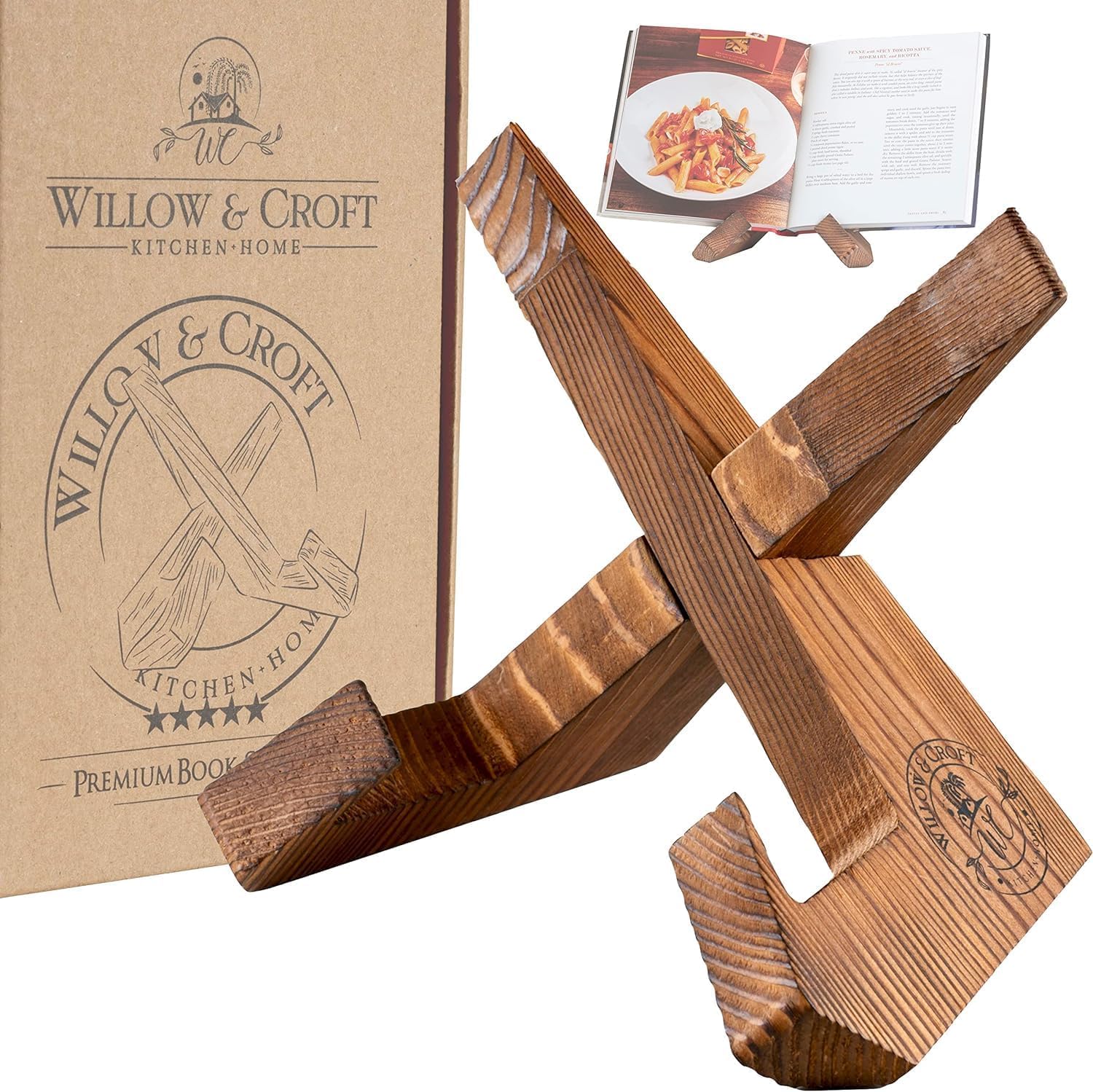 Willow & Croft Cook Book Stand. Rustic Farmhouse Plate Display Stand, Photo Picture Frame Display Stand, Cookbook Holder, Recipe Book Holder. Distressed Cookbook Stand for Kitchen Counter. Home Decor.
