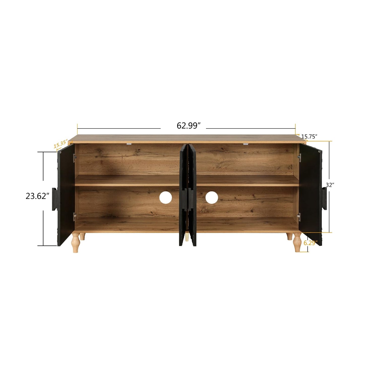 - 【UNIQUE DESIGN】With a black and natural wood finish, Roman column style cabinet legs, and the doors designed with delicate carved flowers, this sideboard combines vintage flair with contemporary aesthetics to add a sense of elegance and sophistication to your interior. Dimensions: 63" (L) x 15.75" (W) x 32" (H).