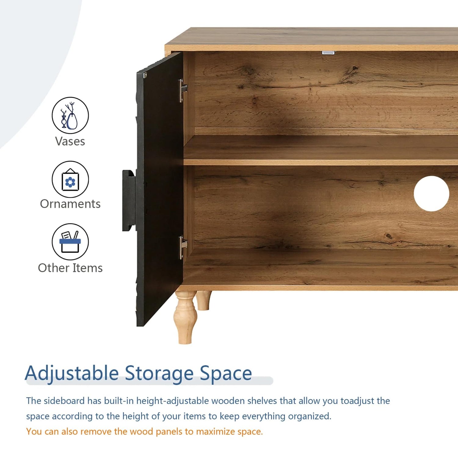 - 【TWO COLORS AVAILABLE】This sideboard is available in black+natural wood color and white+black. It can be used as a credenza in the dining room, a TV stand or decorative accent cabinet in the living room, an entryway table with storage, or as a display cabinet.