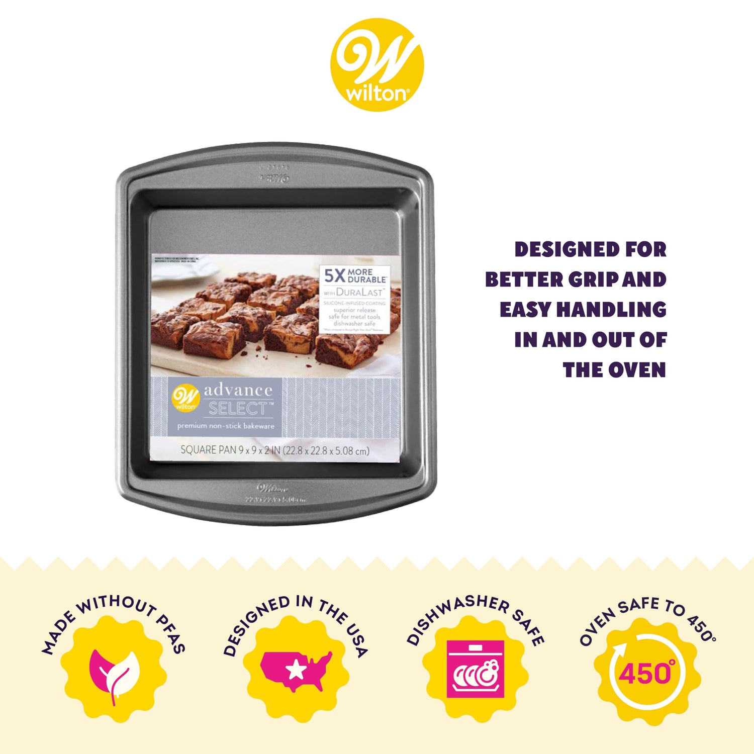 Wilton Advance Select Premium Non-Stick Square Cake Pan, Steel, Silver, 9 x 9-Inch