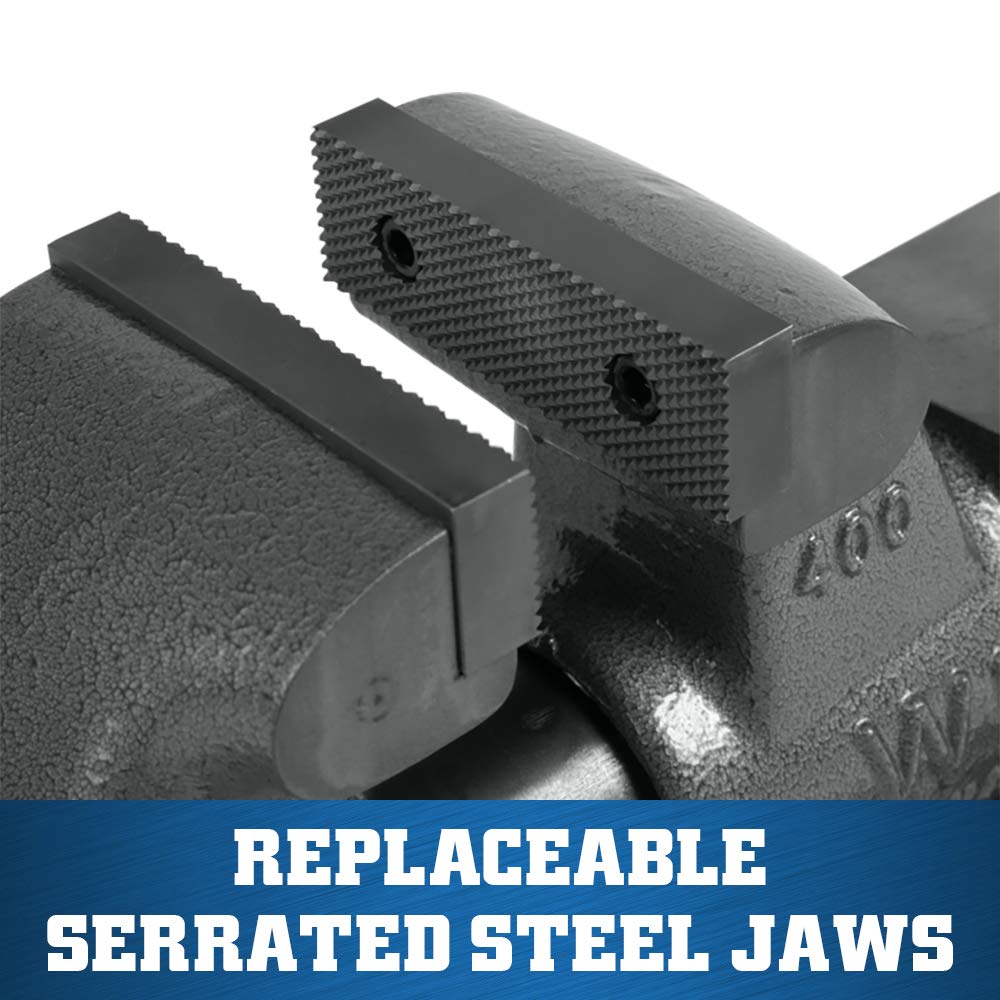 - Massive ductile iron vise body is virtually indestructible, weighing up to 30% more than competing models