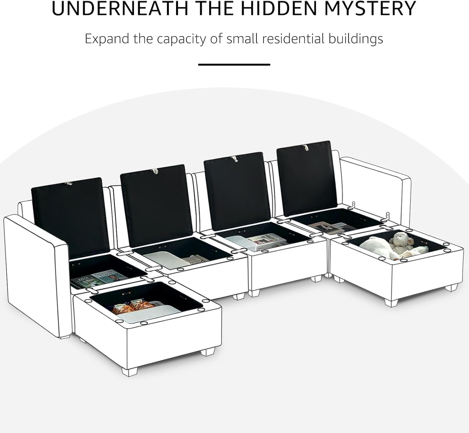 - 【Hidden Storage Space】This comfy modular couch is not only spacious and comfortable but also comes with a storage ottoman. This extra storage space can be used to store daily items such as blankets, pillows, and magazines. It makes item storage convenient while keeping your living room tidy, making more effective use of the living room space