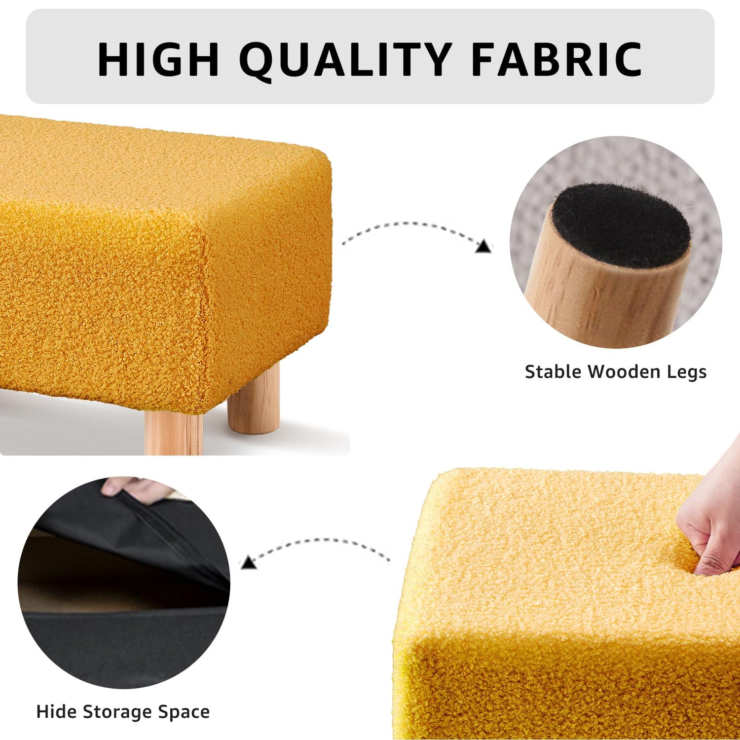 - [Rugged] : The ottoman is made of a solid wood frame with four wooden legs and can hold up to 350 pounds. The bottom is equipped with felt pads for better anti-slip and protection of the floor.