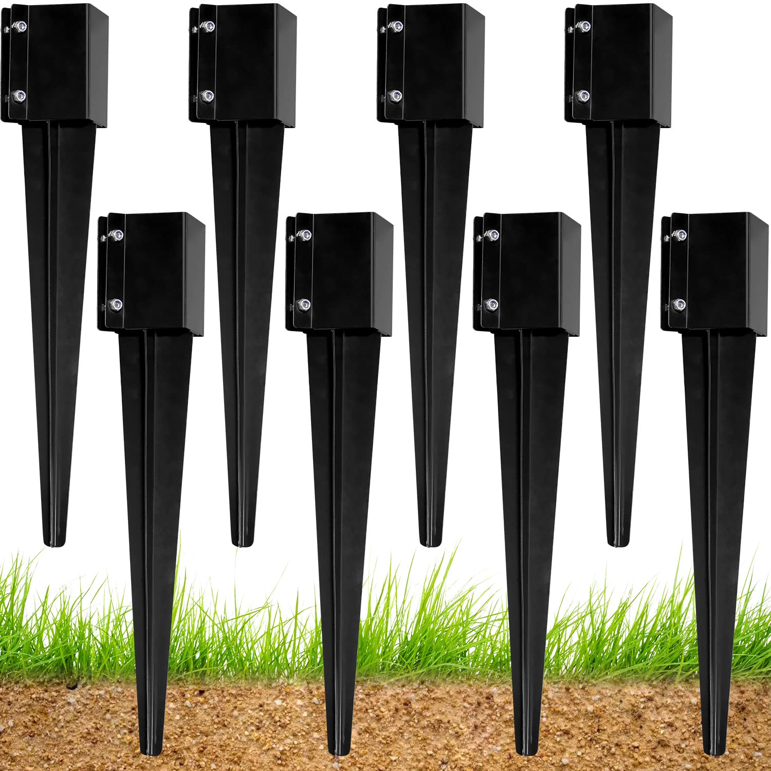 WIMART Fence Post Anchor - Heavy Duty Metal 4''x4'' Ground Spike for Fence, Mailbox, Bird Feeder, Decking... with Black Powder Coating (Set of 8)