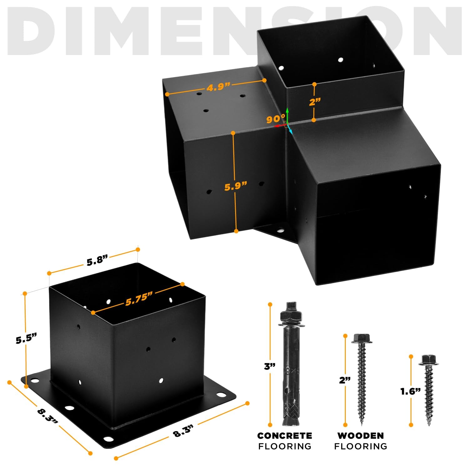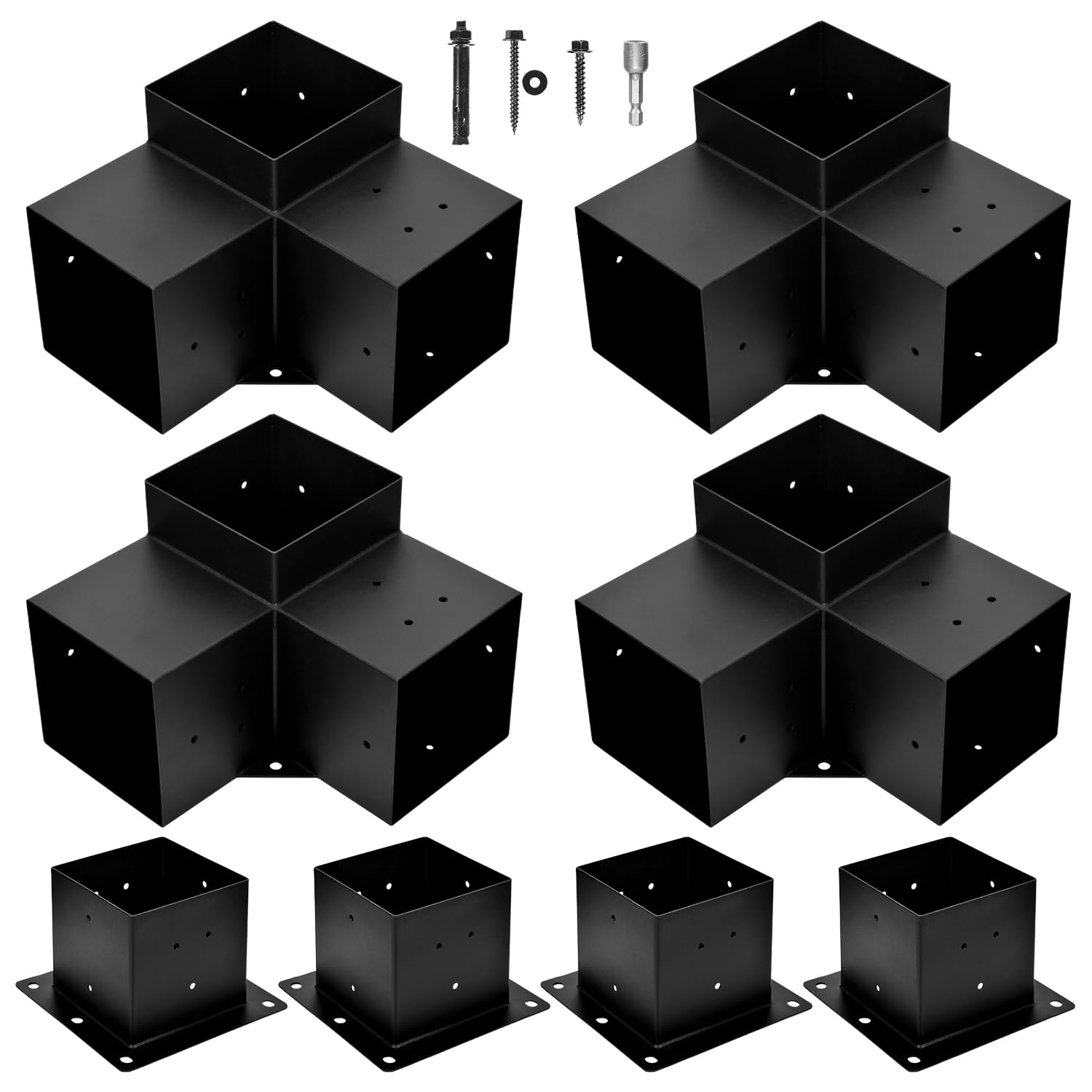 WIMART Pergola Bracket, 3-Way Pergola Right Angle Bracket, Raised Wood Bracket for 6"x6" (Inner Dimensions: 5.5"x5.5") Wooden Beam, Pergola, Garden, Gazebo,... (Set 8)