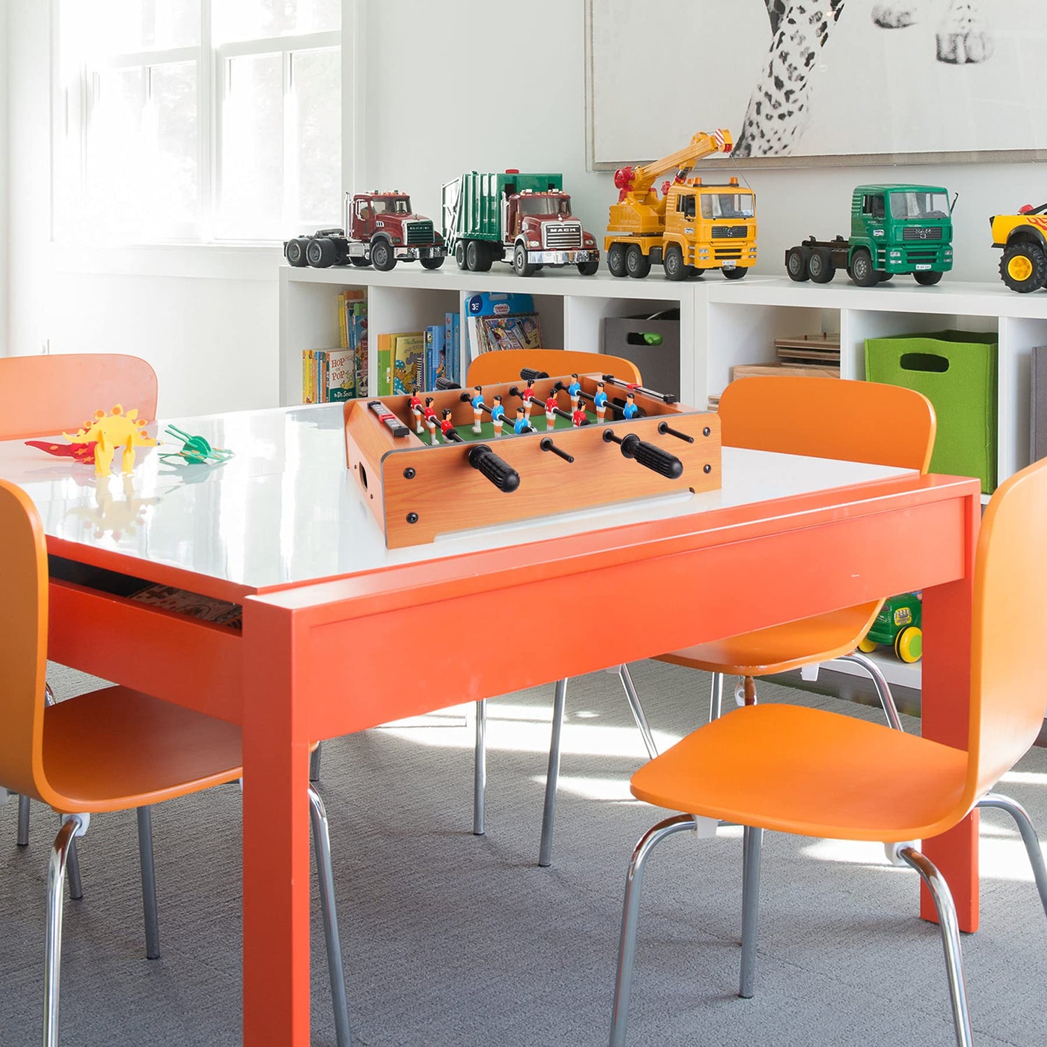 - ⚽For Kids⚽ Curved bump-resistant corners of this high-safety table prevent children from damages. Specially designed for children, the table provides them with another kind of pleasure. Adults can also interact with children by the table to promote parent-child relationship.