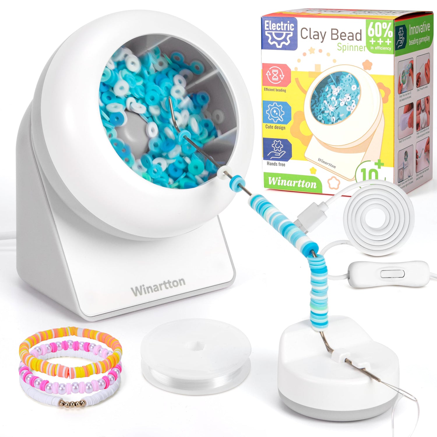Winartton Clay Bead Spinner - Bead Spinner with 2 Reinforced Needles, Electric Bead Spinner for Friendship Bracelet, Bracelet Spinner, Clay Bead Maker, Bracelet Making Kit