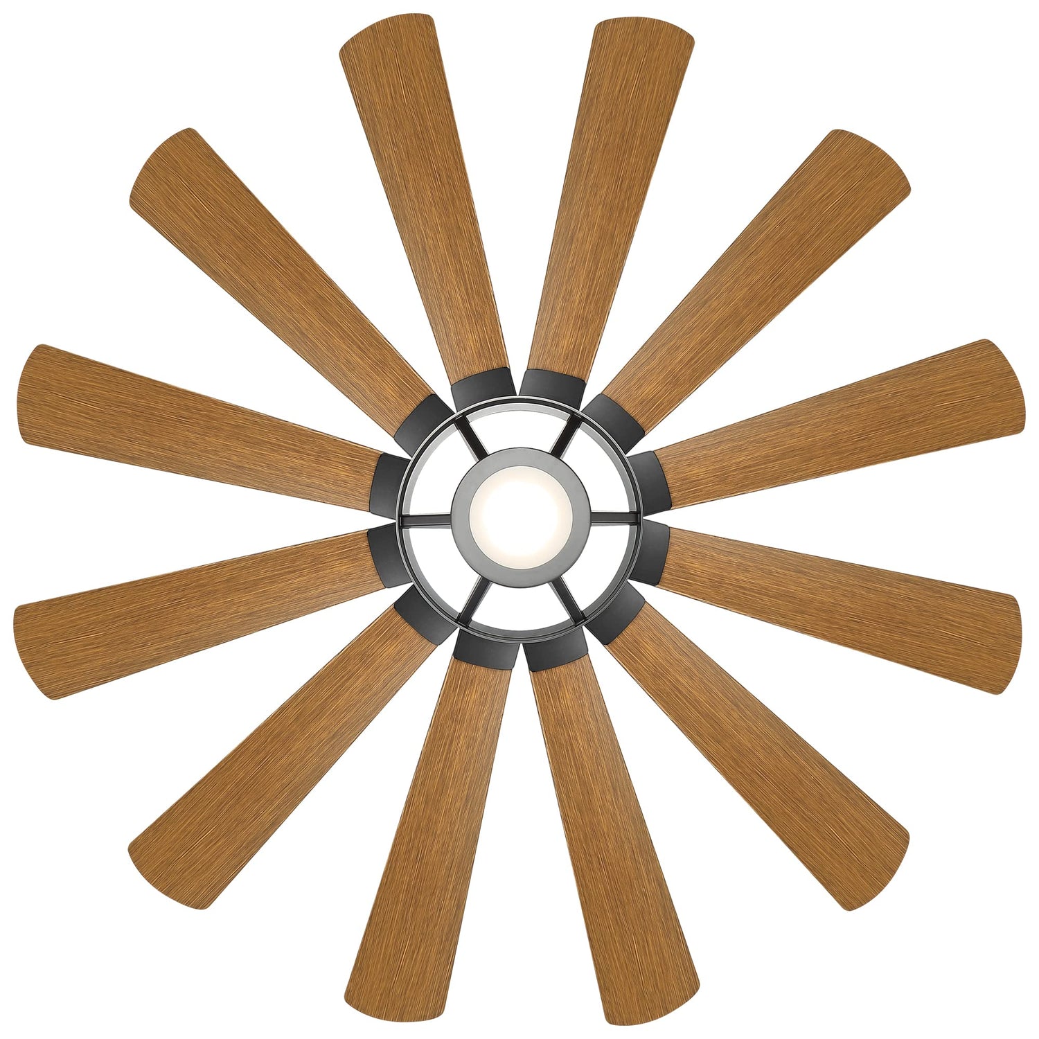 Windmill Indoor and Outdoor 12-Blade Smart Home Ceiling Fan 65in Matte Black Distressed Koa with 3000K LED Light Kit and Remote Control works with Alexa and iOS or Android App