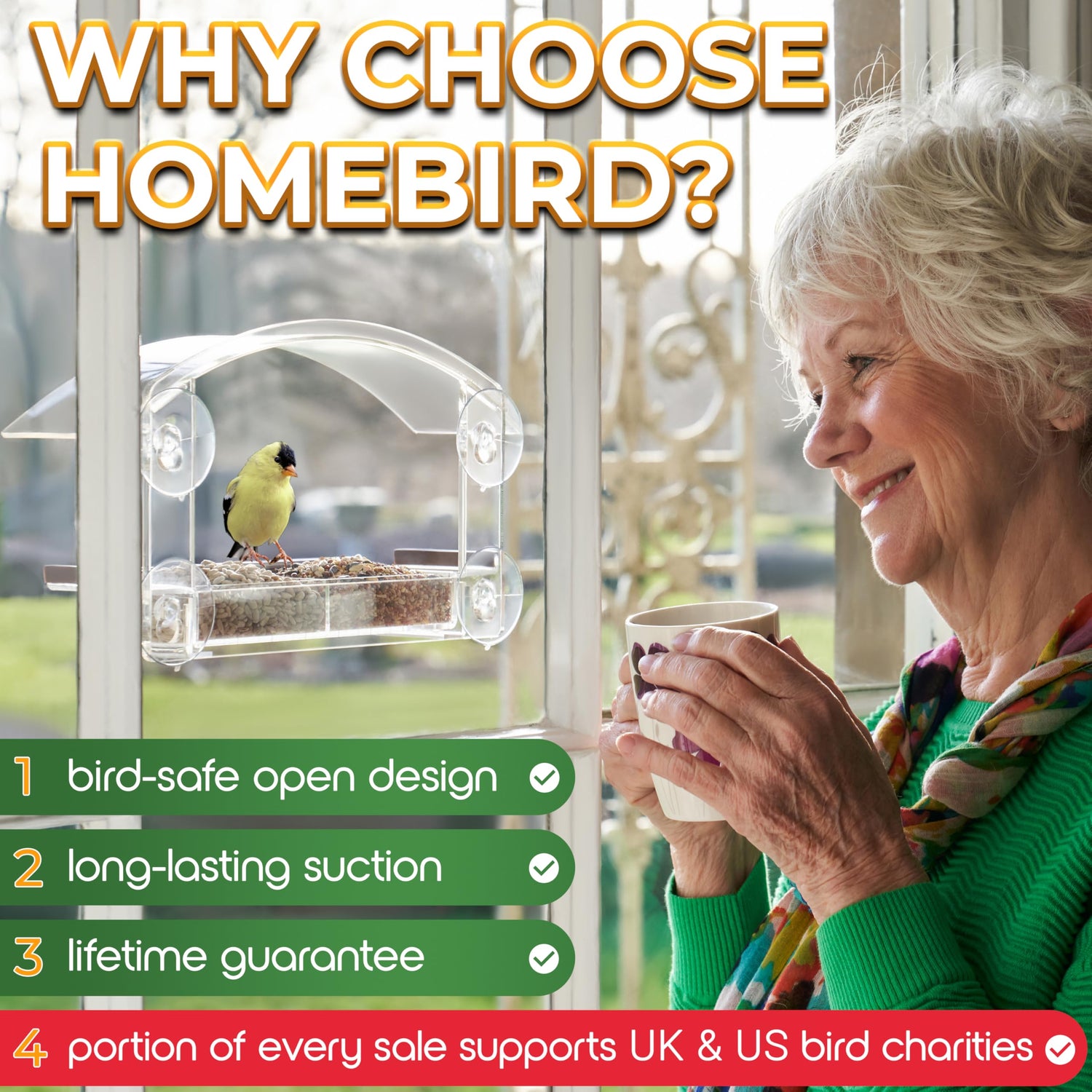 - ✅ A TIKTOK VIRAL SENSATION - with over 100,000 bird feeders sold globally. A window bird feeder inside house will attract all different species to your window! Have complete peace-of-mind with a homebird clear bird feeder for window birdfeeder.
