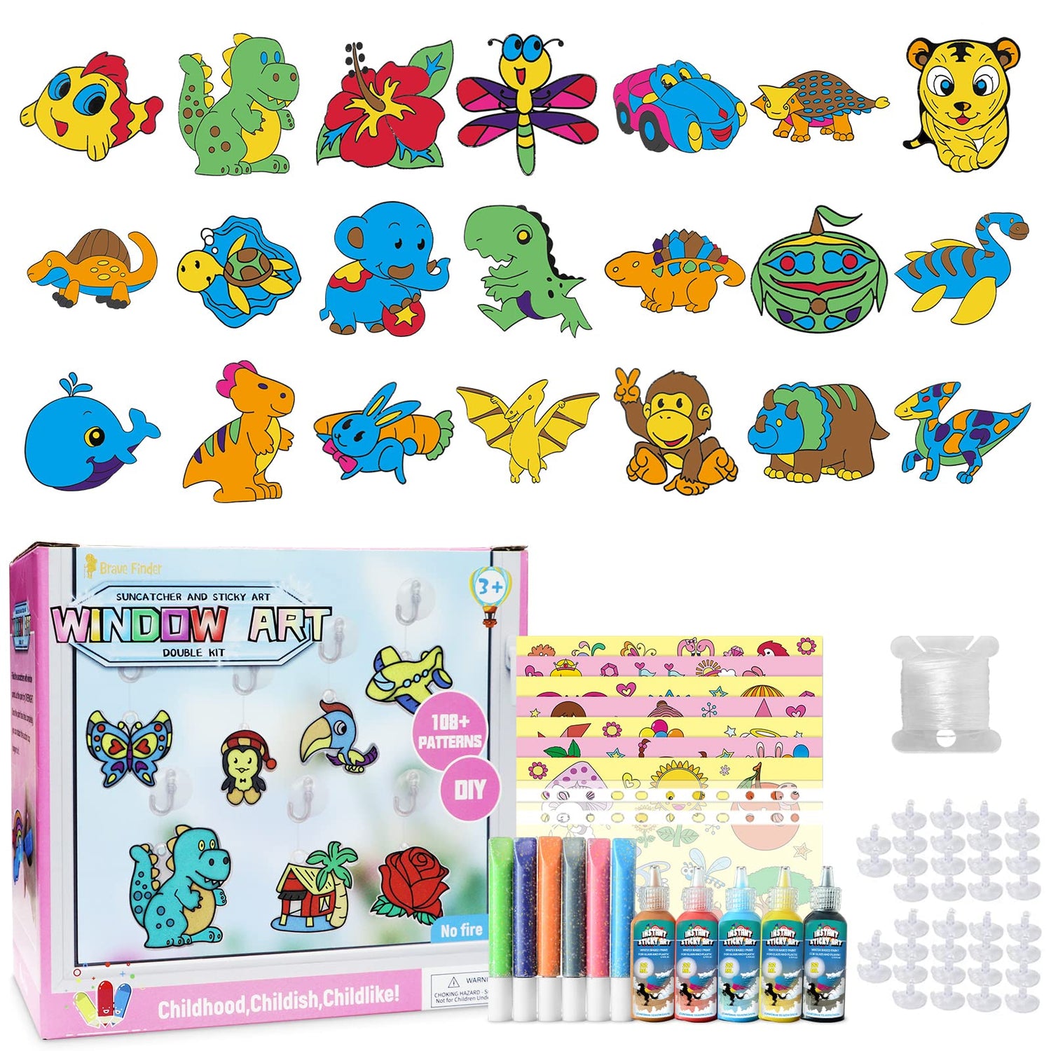 Window Paint Art, 36 Suncatchers Double Craft Kit for Kids – Children’s Make Your Own Fun Suncatcher Set Suction Cups DIY Car & Mirror Arts Crafts Children