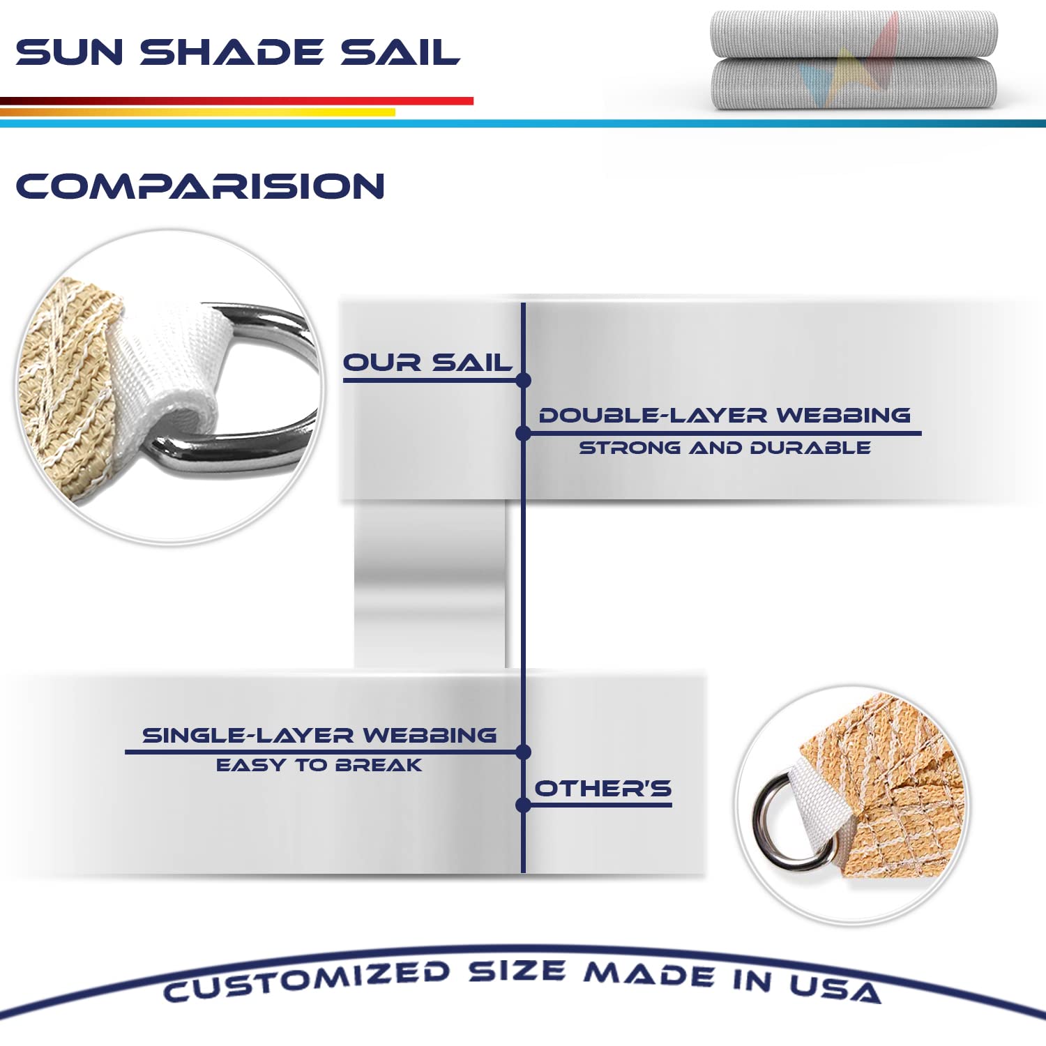 - WARRANTY: Comes with 3 years warranty when used under normal weather conditions. If you have any problem about our sun shade sails, please contact with us.